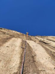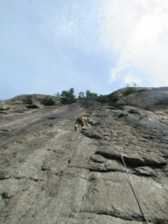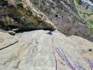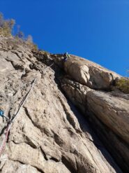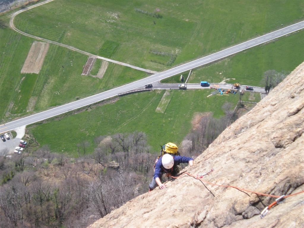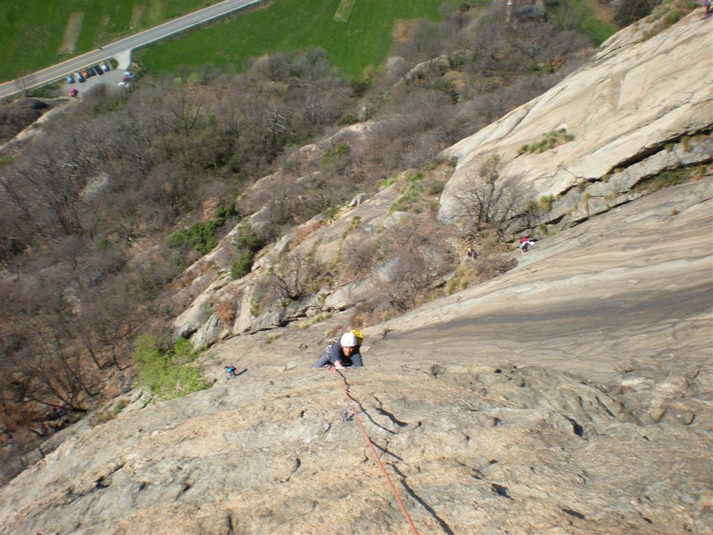 Bella via di difficoltà non elevate ma abbastanza omogenee e continue di placca; bello il tiro di 6a+ sullo strapiombo. Ottima la spittatura (ma non si azzerano completamente i tiri duri: 3° e 6°, il passo devi farlo).