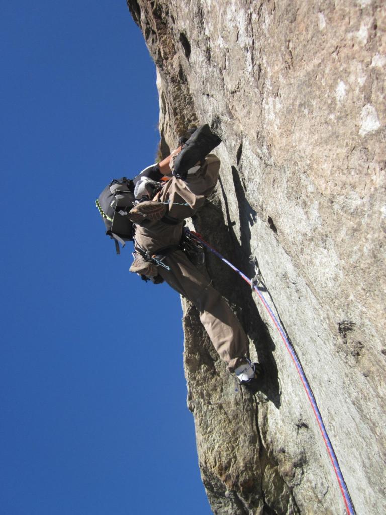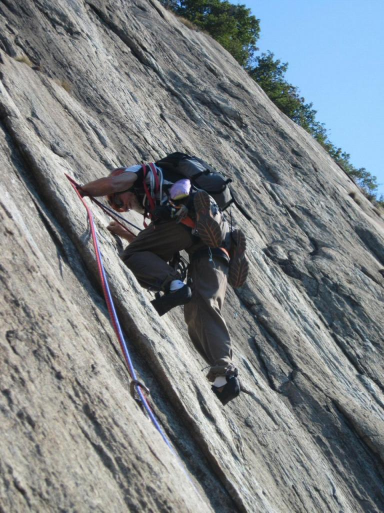Oggi ritornati sugli spalmoni della Corma di Machaby per salire questa via prevalentemente di piedi. Trovati i gradi proposti abbastanza giusti anche se personalmente ho trovato più duro il primo tiro del terzo. I passaggi duri sono tecnici e tutti obbligatori e sono soprattutto di decisione. La roccia della prima parte è decisamente meno grippante della parte superiore. Personalmente mi era piaciuta di più Bucce di Arancia. In ogni caso la targhetta alla base con grado 6b e obbligatorio 6a+ è sbagliata! Secondo me l’obbligatorio è 6a di piede. In compagnia di Roberto e Francesca di ritorno dalla Tanzania.