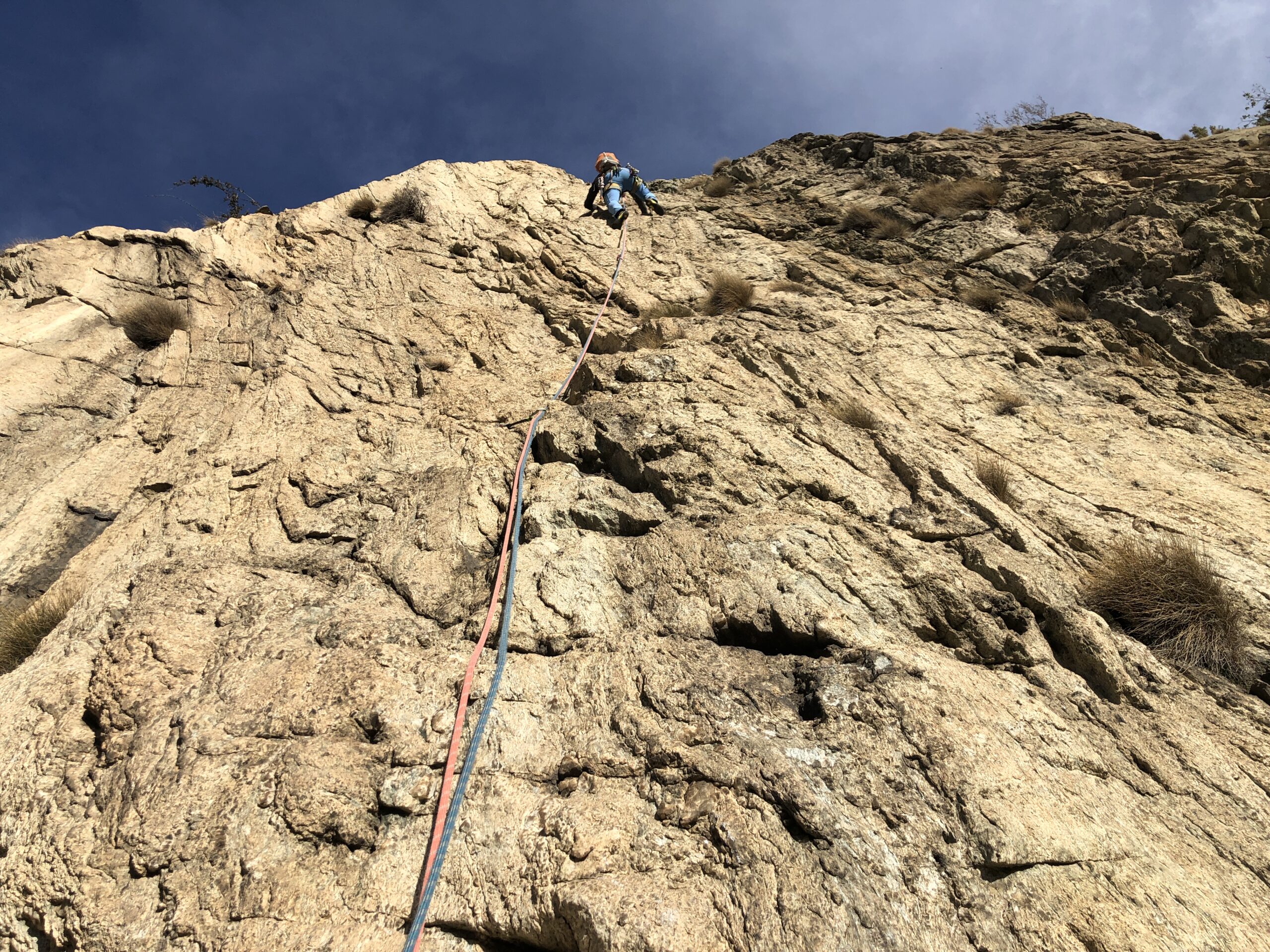 - L6: duro…6a+ cattivo (ma azzerabile bene) dritti dalla sosta poi spigoletto e spostamento a sinistra tutto molto liscio e verticale, roccia ottima. (una variante più omogenea con il resto 4+/5, è stata attrezzata a sinistra lungo buone lame , fix inox da 12 mm)