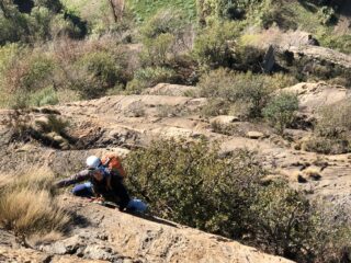 Soste attrezzate per calata, anche se confermo che una discesa in doppia sarebbe a dir poco laboriosa, vista la conformazione della parete…