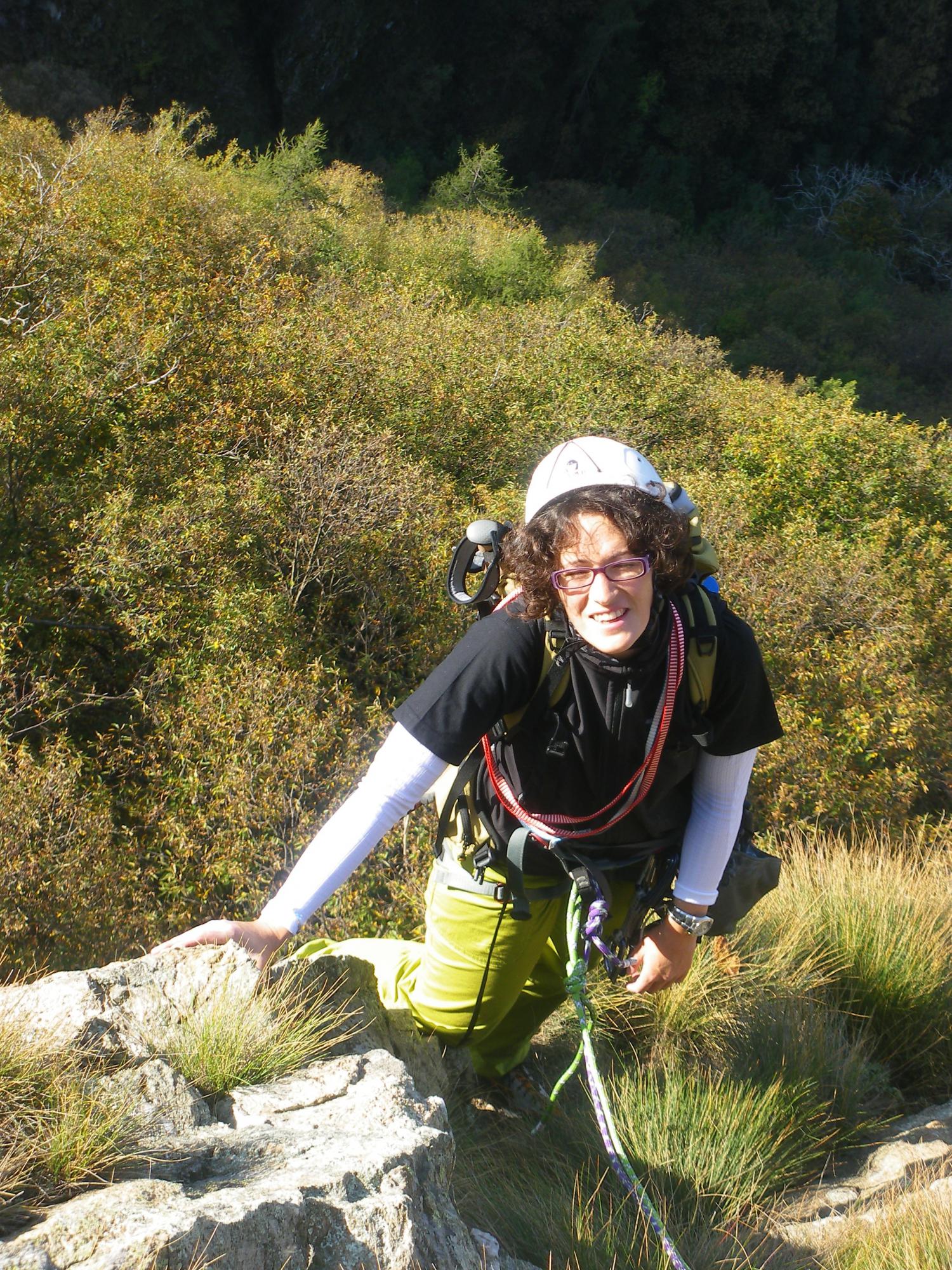 Bella salita, varia, dai primi due tiri di 5a (il secondo forse qualcosa di più di un 5a?), poi il traverso e infine la serie di placche. Fatta oggi con mia moglie Chiara come seconda uscita dopo il termine del corso di roccia, giornata splendida per clima e colori. Giunti al termine della via ci si riposa con la magnifica vista sulla valle di Champorcher e zona Avic.