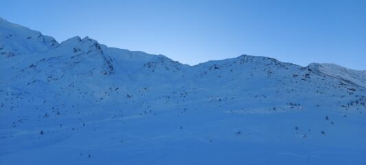 La neve è ancora polverosa e bella da sciare (a parte l’ultimo pendio ripido in uscita dove cè un po di crosta )