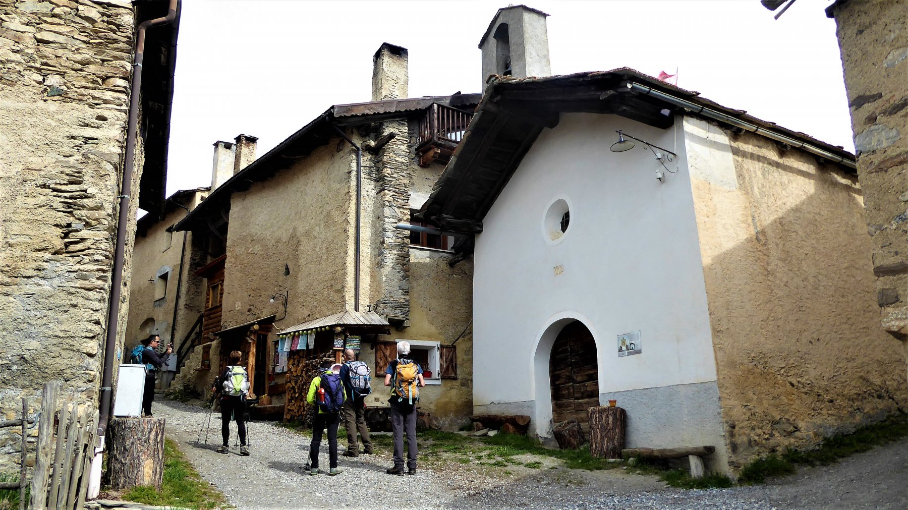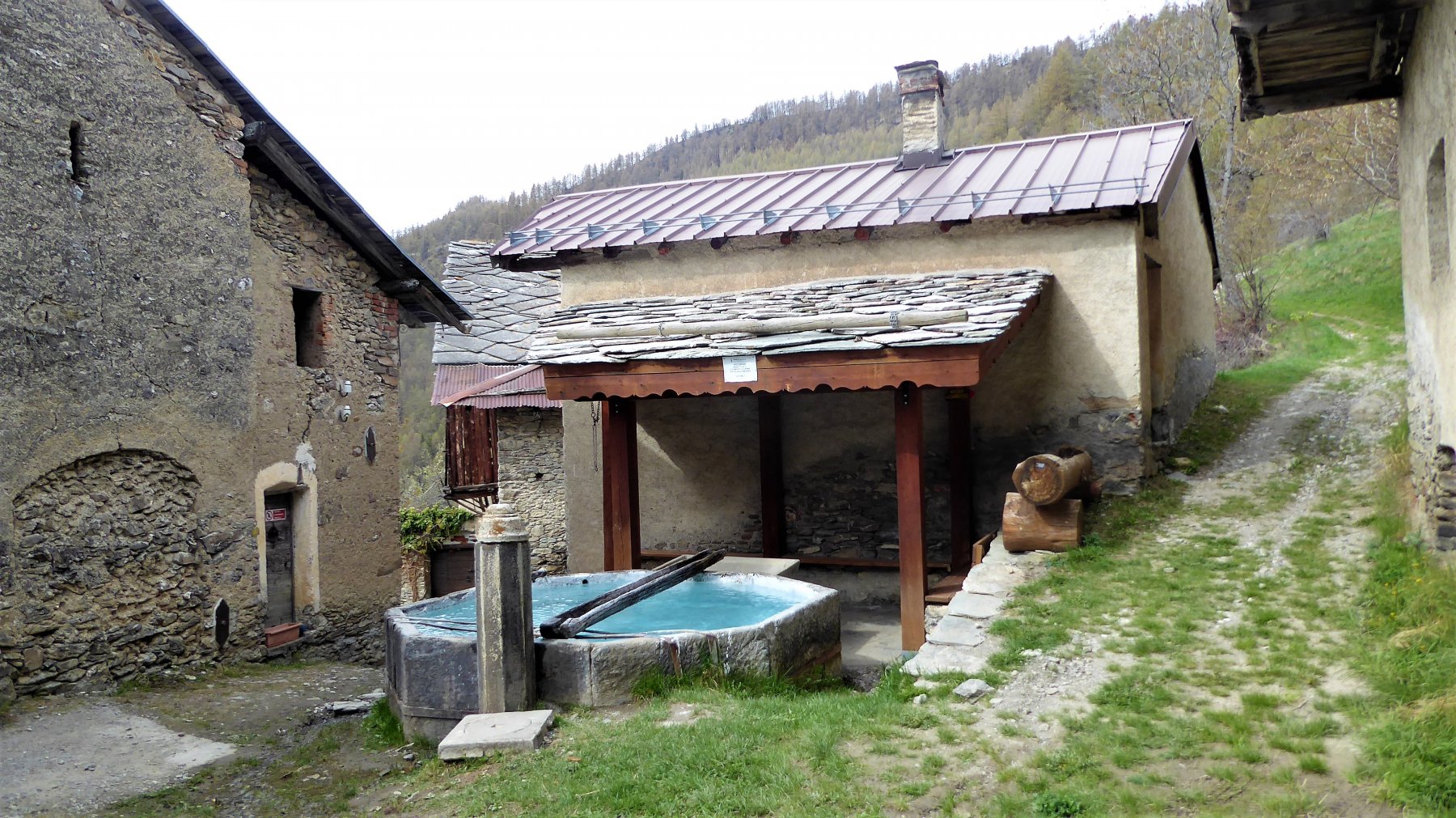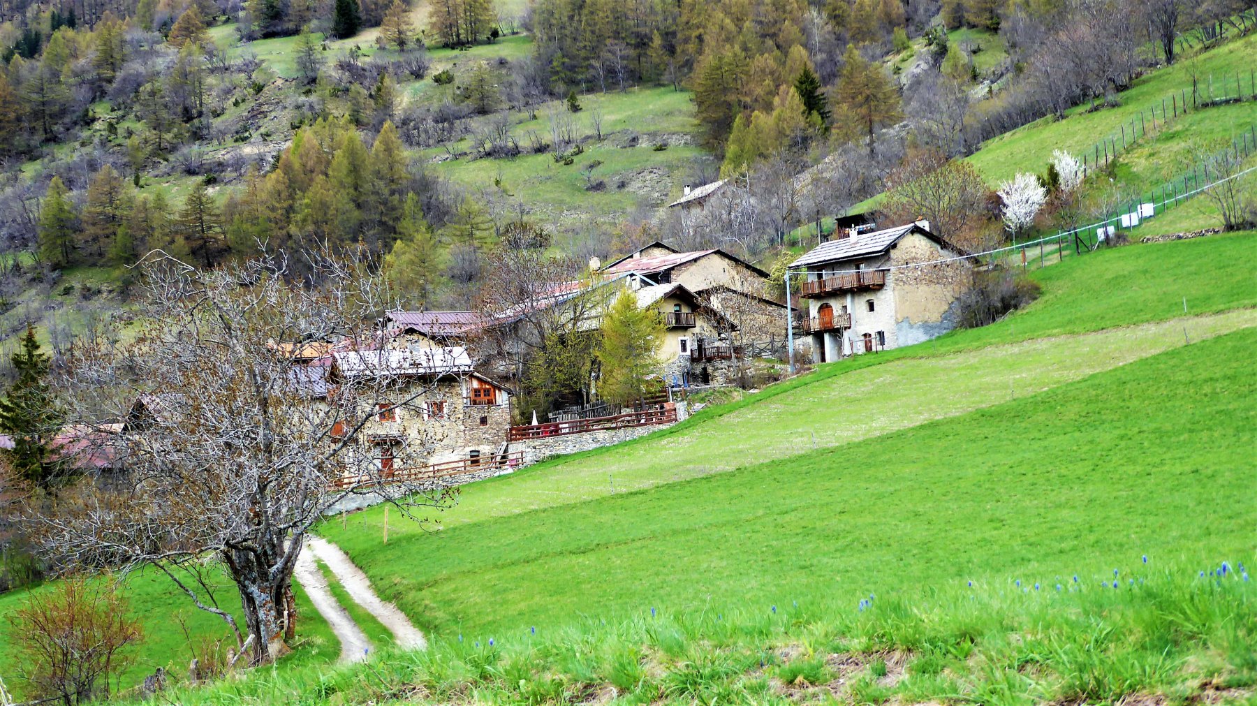 Attraversato il ponte si giunge tra le case della piccola frazione, dove si incontra un cartello con un sentiero indicante Soubras, sentiero recentemente risistemato.