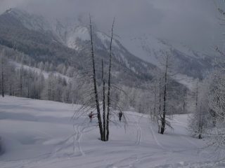 Data la giornata, gita di ripiego ampiamente remunerativa, anche se molto tracciata. La neve è farinosa ed abbondante, temperature molto basse, -10°.