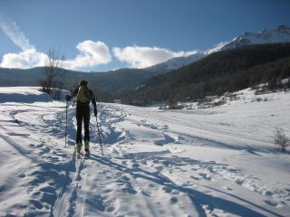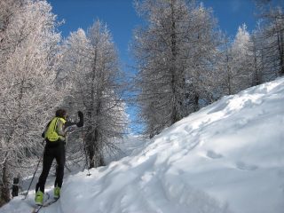 Partiti poco sotto Chateau… Su tutto il perorso ci sono pochi cm di neve fresca fatta ieri.. A scendere non male, peccato che ci sono un po’ di tracce di discesa perchè i tratti vergini sono molto belli
