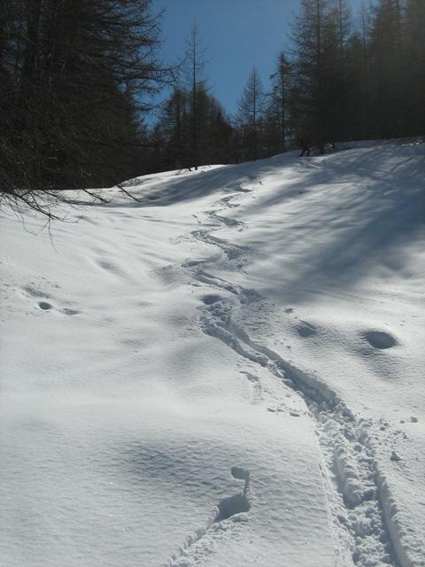 Visto il rischio valanghe elevato e le condizioni della neve non proprio esaltanti, abbiamo optato per il Cotolivier. Qui in effetti il vento non ha fatto danni ed è quindi una gita piacevole e sicura. Partiti sci ai piedi da Beaulard intorno alle 8.45 proprio mentre al parcheggio iniziavano ad arrivare molte auto. Salita senza nessun problema, la traccia è ormai una specie di autostrada. Visto l’affollamento, non ci siamo soffermati troppo in vetta, anche se si stava veramente benissimo…sole tiepido e giornata bellissima…discesa iniziata verso le 12. Nella parte alta si trova ancora della bella farina, appena un minimo appesantita ma perfettamente sciabile, mentre nella parte bassa la neve è più pesante. Un po’ di crosta solo nelle radure maggiormente esposte al sole. Velocissima la stradina che riporta a Beaulard, ormai perfettamente battuta. Oggi si trovavano ancora ampie zone vergini, ma con tutta la gente che c’era dubito che da domani sia ancora così!!!