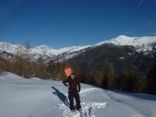 Ho inserito la descrizione di questa gita nelle categoria “sci alpinismo” ma avrei potuto anche inserirla in quella relativa alle racchette da neve. Il motivo di tale ambivalenza è dovuta alla mancanza di una categoria specifica, quella del “backcountry”, ovvero salire con ciaspole e tavola a spalle (o con splitboard) ed affrontare la discesa da snowborder.