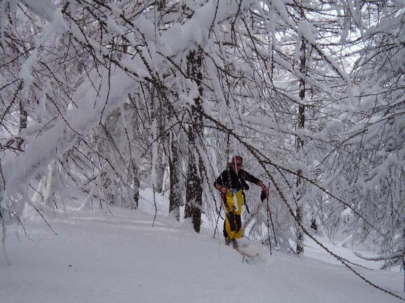 Nessun problema tecnico se non da prestare attenzione ai rami…la parte bassa era gia umida in partenza, ma dopo circa 200m passava in una farina umida fino in cima…Su ce la siamo goduta, e dopo qualche foto di rito siamo scesi…purtroppo era ancora più umida, ma abbastanza divertente se si cercava la max pendenza…ma da metà in giù la neve era veramente pesante. Ci rifaremo nei prox giorni ciao