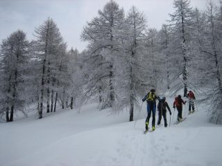 Stamattina alla partenza -9°C, a Chateau ieri deve aver nevicato quasi niente, in alto ci saranno una quindicina di cm di fresca..
