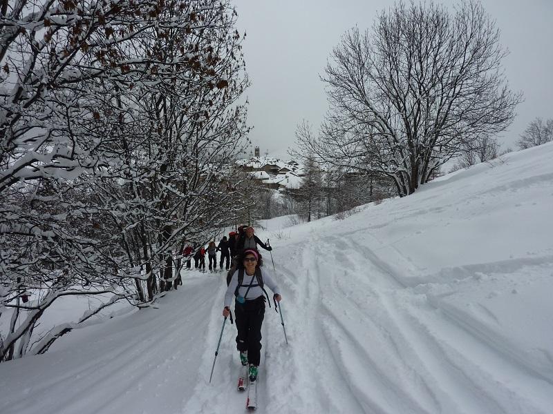 Ma che ridere e che fatica la discesa da Château dopo l’abbuffata con polenta e menù dello scialpinista!