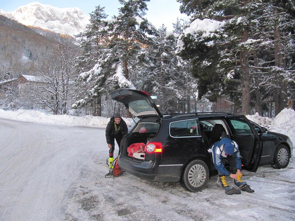Un sacco di gitanti mentre scendiamo e posteggio pieno a Beaulard al nostro arrivo alle 12:45.
