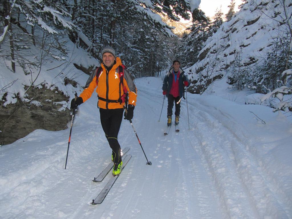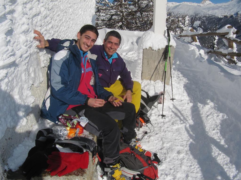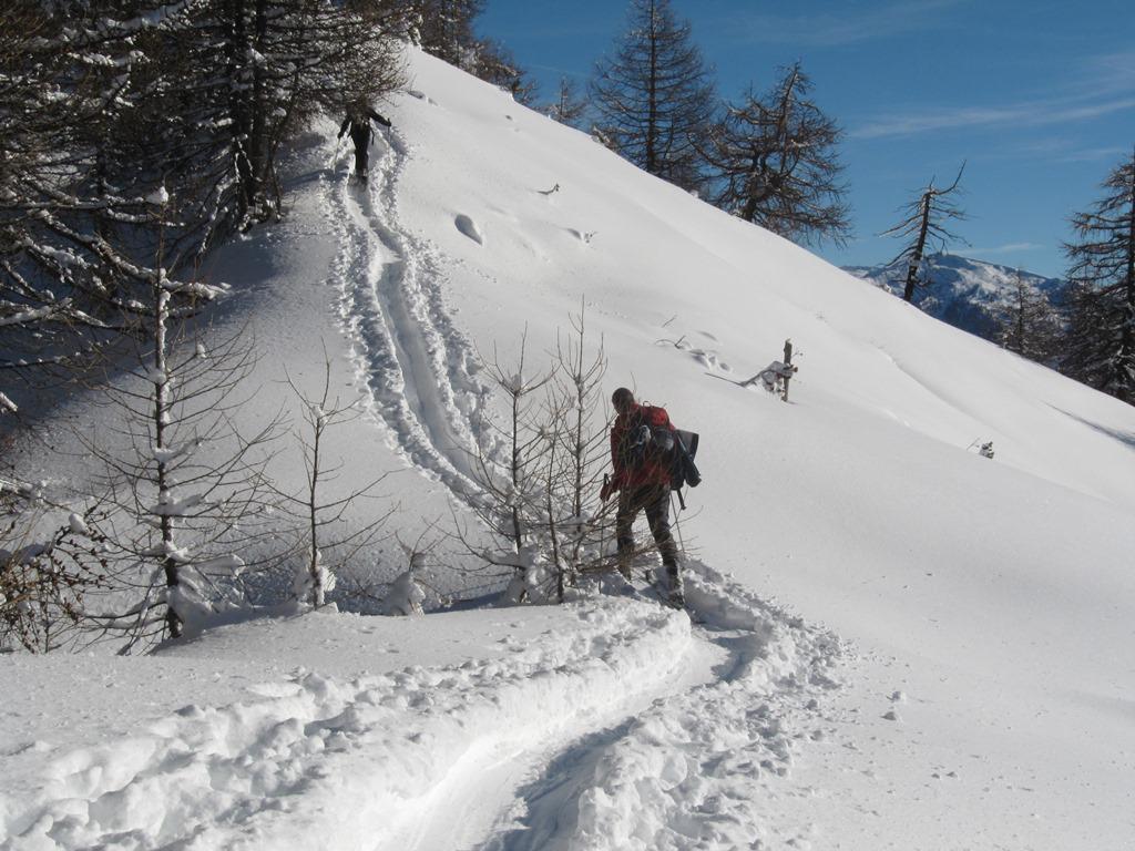 Temperatura soto zero alla partenza, ma il sole l’ha innalzata considervolmente. Se continua così nei prossimi giorni, l’assestamento del manto nevoso è garantito…. Speriamo…