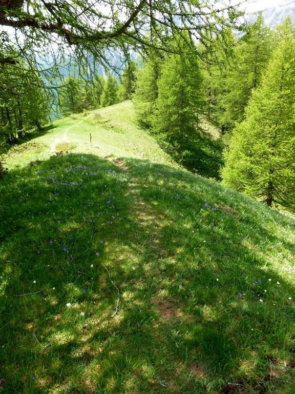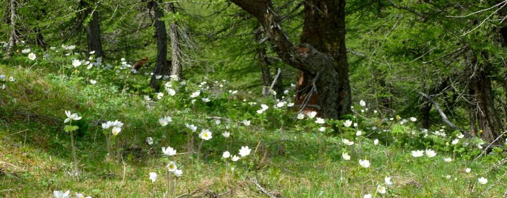 Spettacolari vedute … una cerva ( o capriola? ) … una capriola mia per ribaltamento sul ripidissimo sentiero dritto nel bosco … una lepre… una marmotta e u tripudio di narcisi o anemoni bianchi ( non so) che fanno da tappeto incredibile al bosco … genzianelle e violette .