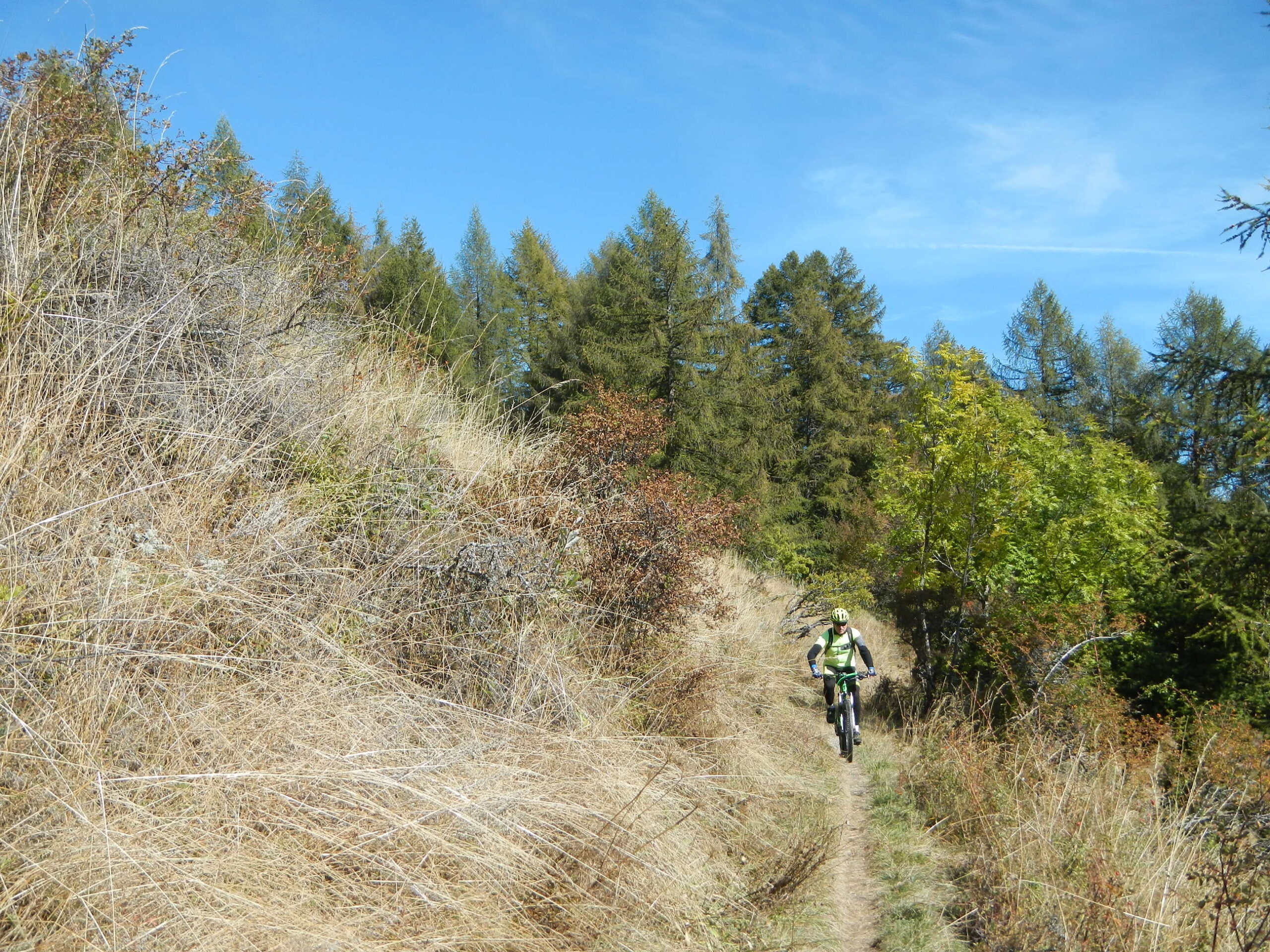 La discesa su Fenils dal Col Gris si svolge su sterrato quella dal Colletto Rosso, dopo un sostenuto strappo in salita, offre un bel tratto di sentiero a mezzacosta verso Pra Claud.