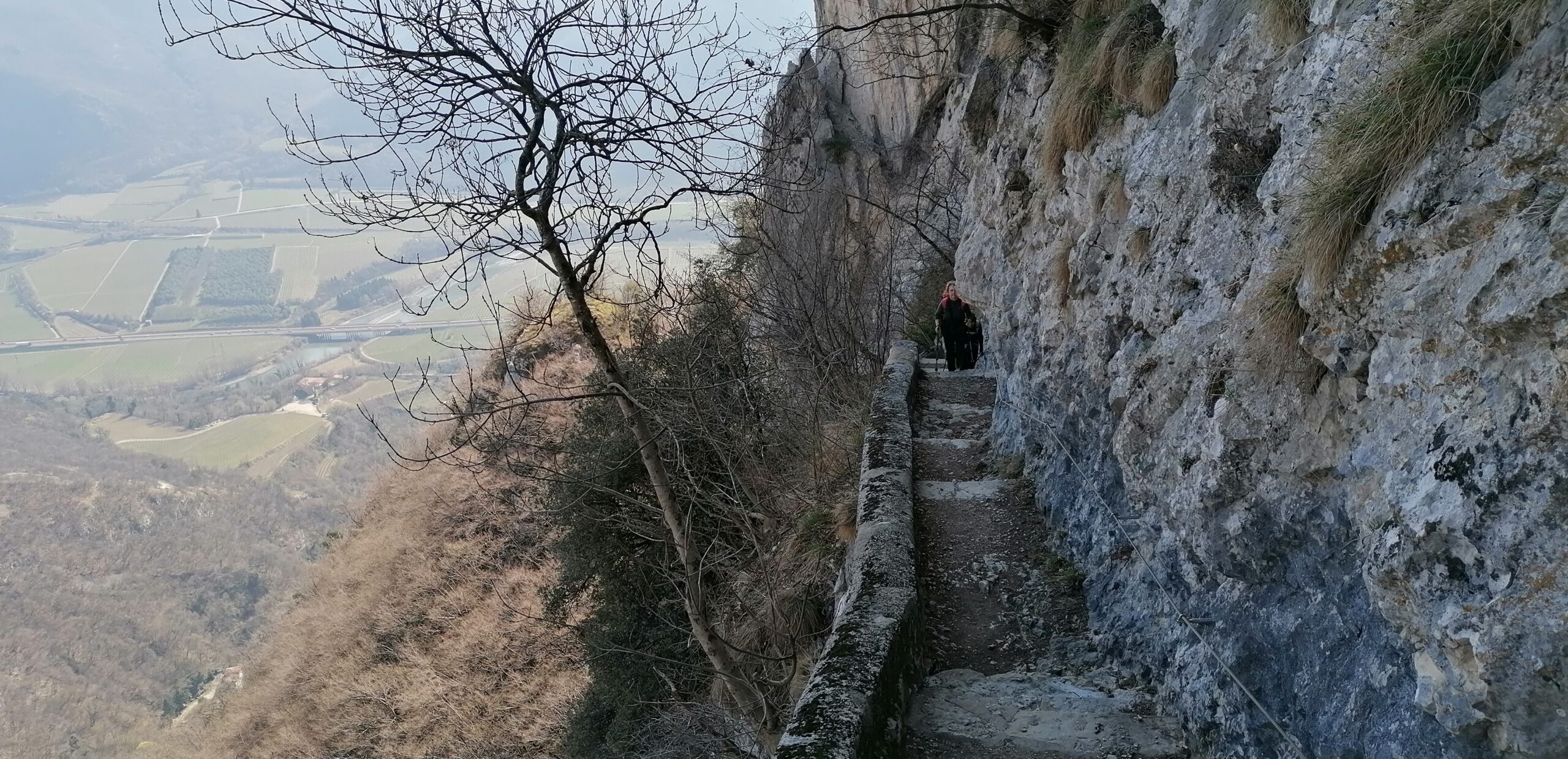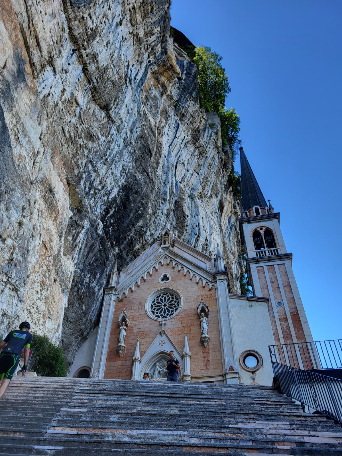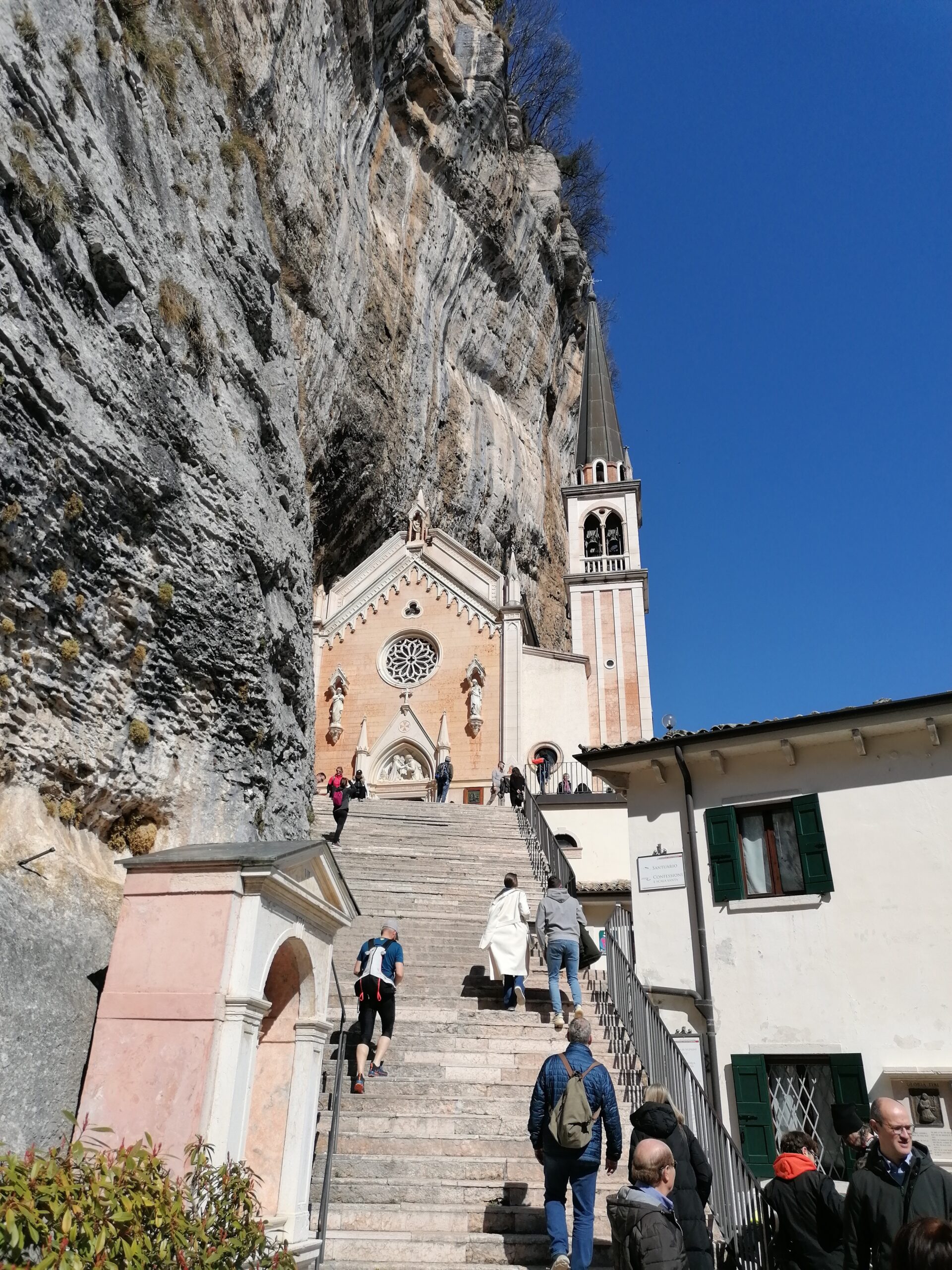 Si sale la suggestiva scalinata fino al santuario senza possibilità di errore. Si torna quindi sui nostri passi fino al bivio del sentiero 75 per malga dell orsa. Lo si percorre su terreno molto esposto con splendida vista sulle pareti rocciose e sul santuario stesso.