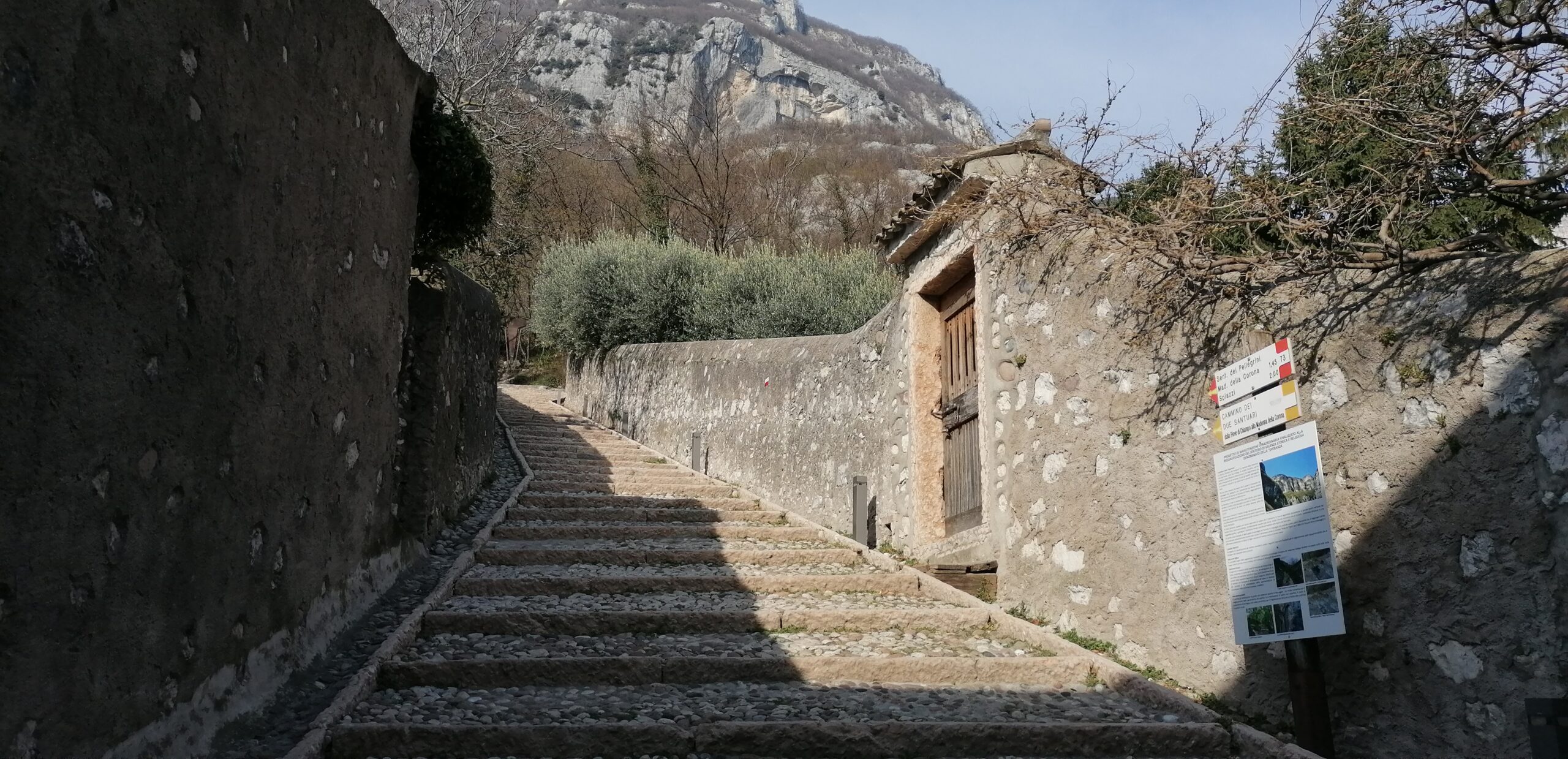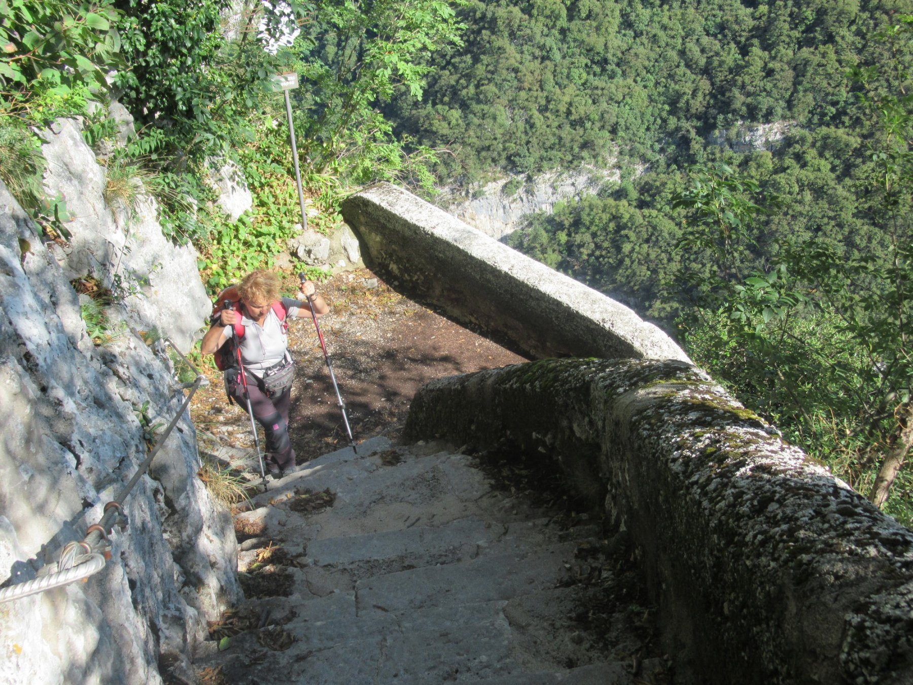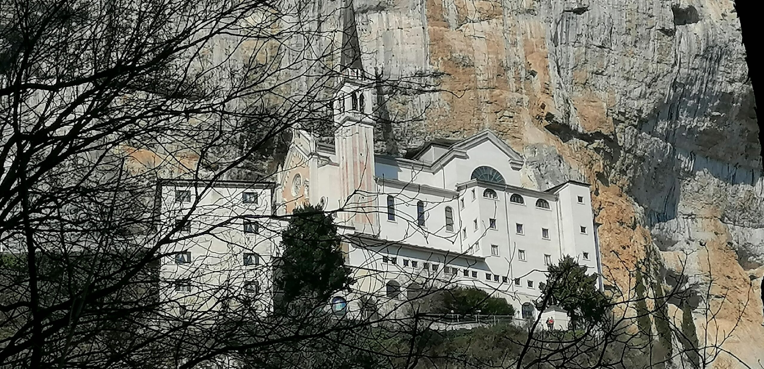 Si sale la suggestiva scalinata fino al santuario senza possibilità di errore. Si torna quindi sui nostri passi fino al bivio del sentiero 75 per malga dell orsa. Lo si percorre su terreno molto esposto con splendida vista sulle pareti rocciose e sul santuario stesso.