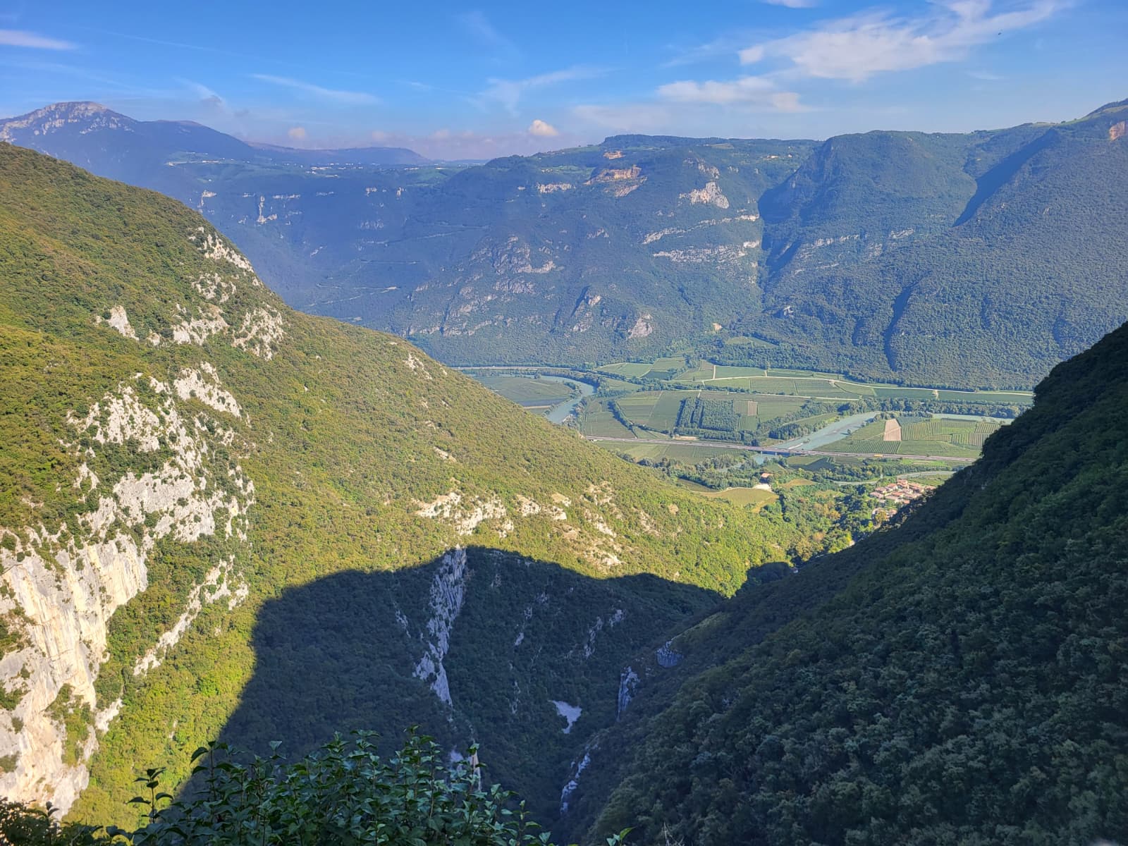 Abbiamo cosi guadagnato quota fino ad intercettare una condotta dell acqua e seguita questa per tutta la sua lunghezza siamo arrivati al bacino di contenimento dove comunque esiste un sentiero appena accennato che ci ha riportati con ripida discesa sul sentiero 74 e da qui brevemente a brentino.