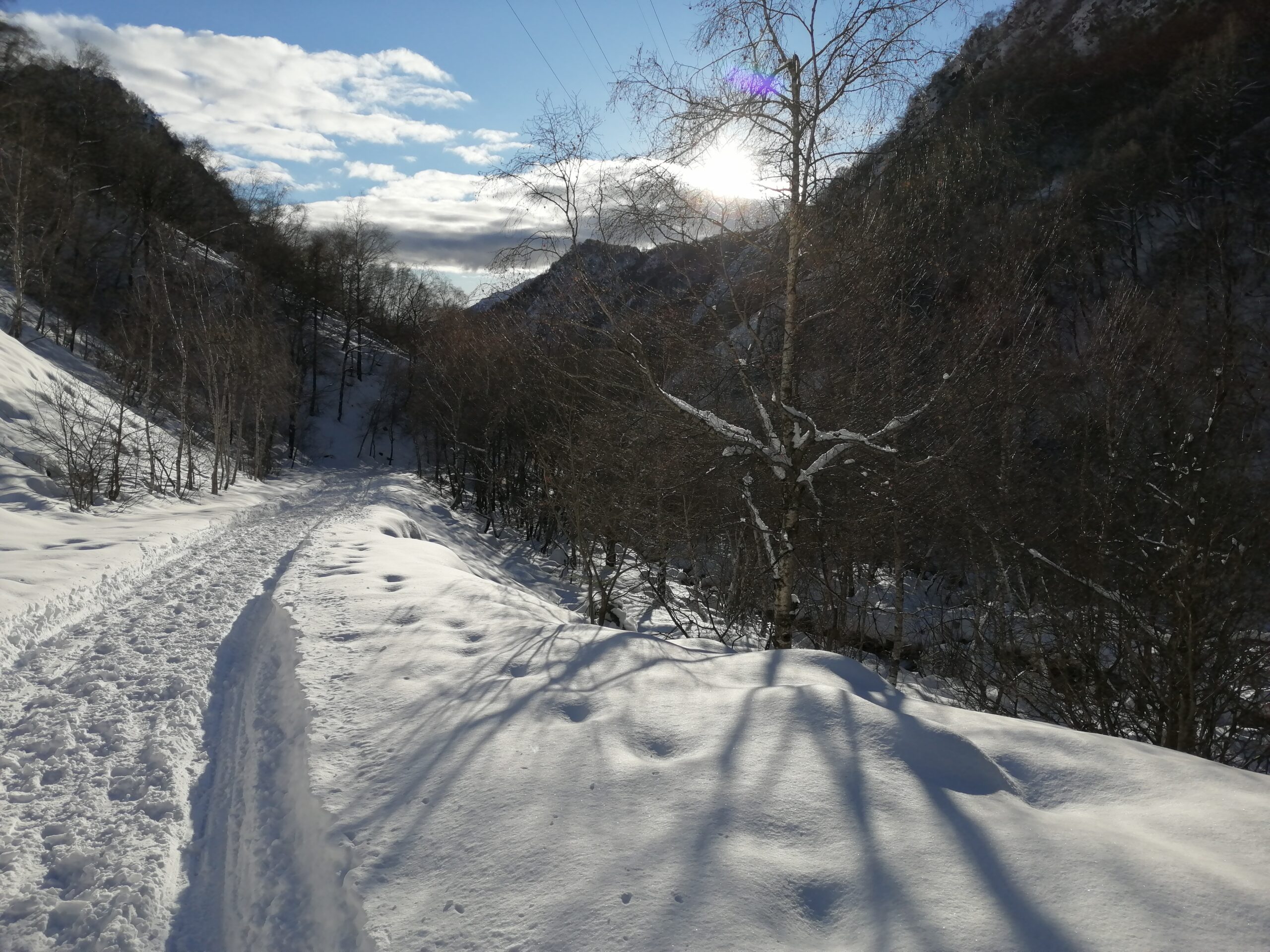 Salita pomeridiana in solitudine per godersi la valle imbiancata come nei tempi passati.