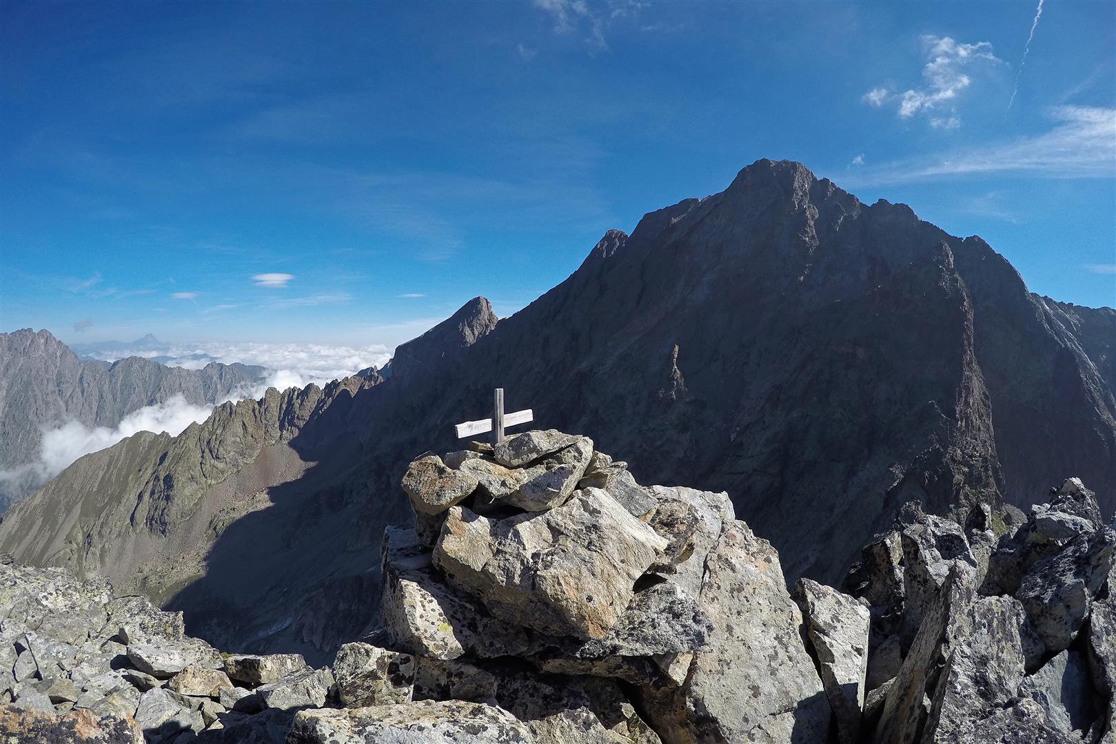 Quarta ed ultima vetta: la Madre di Dio m.2790 – m.2800 costituita da due vette, la Ovest la più alta e dove è posta una statua bianca della Madonnina col Bambino in braccio, e la Est, separate tra loro da una forcella. Salita dalla cresta Est.