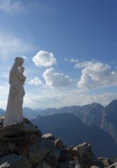 Entrambi i passaggi (V-, V) per rimontare la Madre di Dio li abbiamo affrontati in scarpette. Sul primo c’è un chiodo con cordino, sul secondo non è facile integrare ma le difficoltà si concentrano solamente su un breve passo.