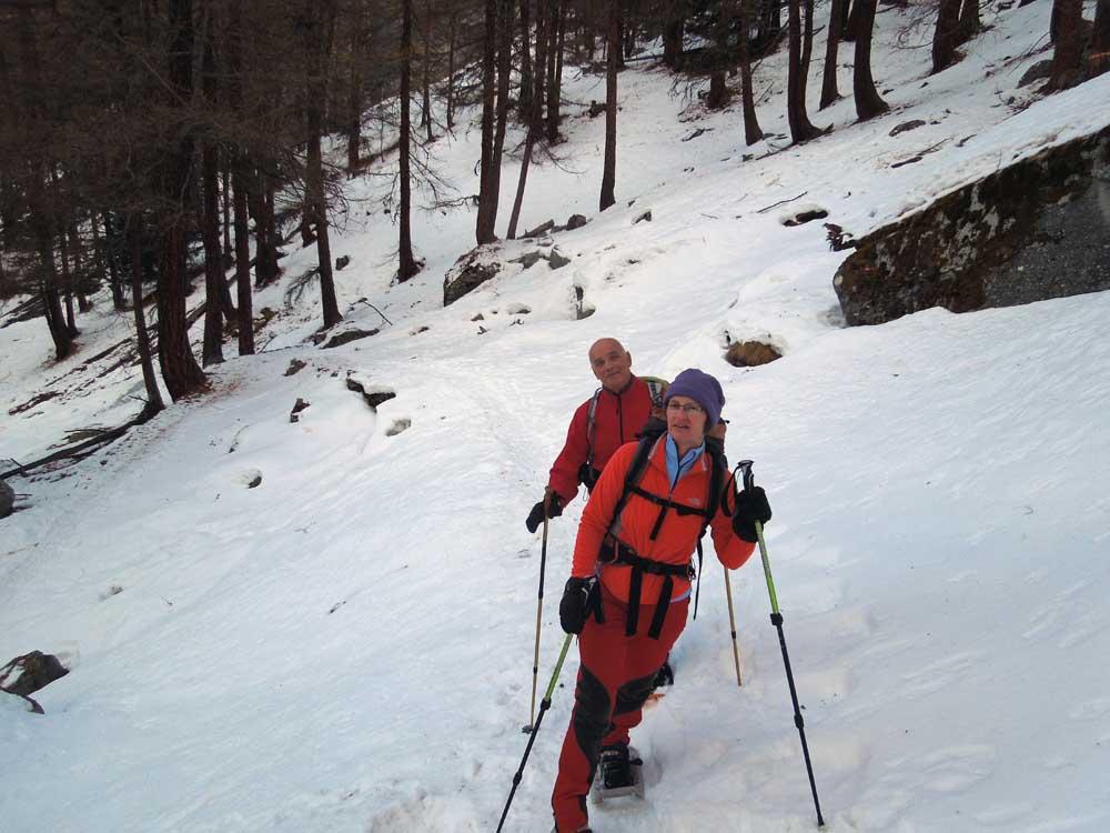 Come già detto da Vipi 4457 la neve era sufficiente tranne che nei tratti più fitti del bosco dove era assente o gelata sotto il tappeto di aghi delle conifere. Percorso ben tracciato e mai faticoso.