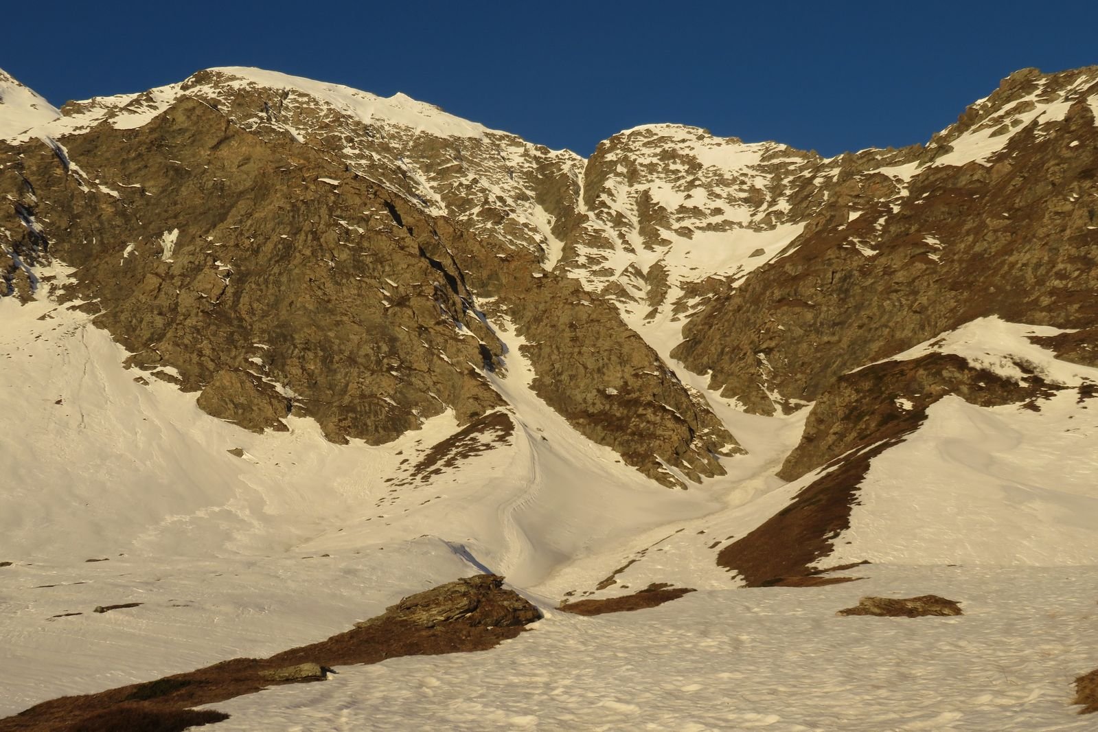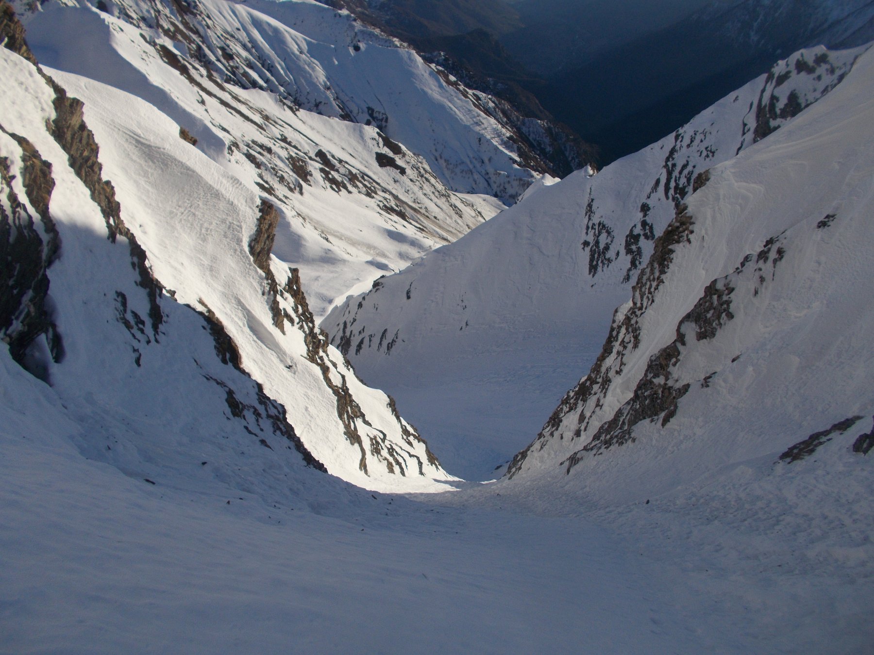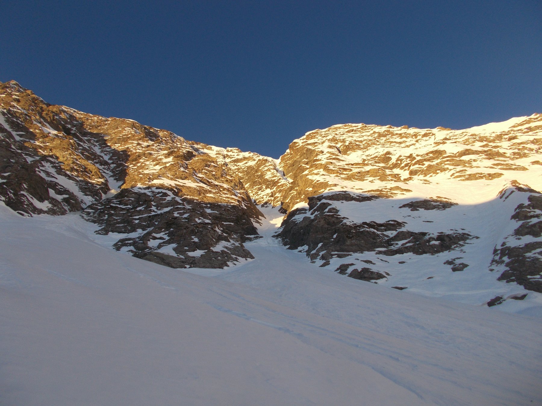 Il canale dopo poche centinaia di metri piega a SSO e si allarga infilandosi fra la cresta NNE della Mait d’amunt e quella NNE della Mait da Val.