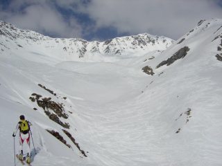 Stamattina alla partenza ci siamo subito resi conto che oggi la neve non sarebbe stata delle migliori causa mancato rigelo notturno.In effetti il firn l’abbiamo visto solo dalla vetta fino ai piedi del colle Malacosta poi man mano che si scendeva diventava sempre più marcia fino a diventare una bella polenta, e non siamo scesi tardi alle ore 11.00 eravamo già in macchina.