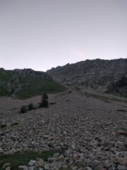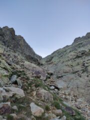 Dopo 15 giorni ci ho riprovato e sono arrivato in vetta. Questa volta sono salito dalla pietraia sulla destra. SORPRESA : ci sono molti segni blu’ e a tratti si vede anche il percorso tra lo sfasciume. Bisogna solo trovare il primo segno vicino al laghetto alla partenza. Arrivato nel canalone ho visto che i segni blu’ , sempre presenti fino quasi in cima, sono tuttavia meno numerosi. Ma in una giornata di buona visibilità non ci si puo’ perdere. La discesa per lo stesso percorso richiede molta cautela per non scivolare sul pietrame e sul sentiero ghiaioso e erboso. Consiglio delle buone scarpe da montagna.