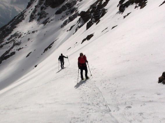 Raramente come giudizio complessivo dò un’asterisco ma questa volta una serie di circostanze negative(che non stò ad elencare) mi hanno costretto ad essere così tirchio.Primo fra tutti il fatto che non sono mai riuscito a salire questa benedetta montagna con le racchette,e dire che l’avrò salita almeno altre dieci volte!Comunque ci siamo fermati a quota 2600 metri (sigh!).Le ciaspole si possono tenere sullo zaino almeno fino a quota 2300, cercando naturalmente il percorso tra i ripidi prati,poi la neve diventa abbastanza continua per poterle mettere.Visto diversi scialpinisti,partiti sicuramente molto prima di noi, che godevano come dei ricci su una neve sciabilissima.Poi con i “gava e buta” non so come se la siano cavata.