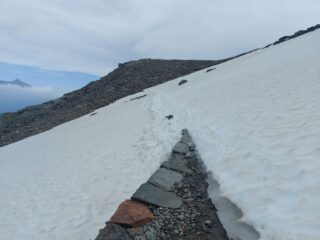 Tutto pedalabile tranne i soliti 100m subito prima del colletto sotto il monte Droset, dove la militare diventa il letto di torrenti ad inizio primavera. Solita lingua di neve di meno di 50m di lunghezza sotto al Malamot (condizioni da Agosto inoltrato). Discesa dalla crestina sul Pattacreuse anche questa sempre più dissestata.