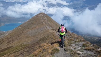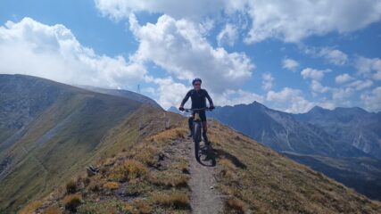La sterrata è sempre più impegnativa per fondo sconnesso, pietroso ed eroso ma grazie “all’aiutino”, per la prima volta non l’ho dovuta spingere se non in 2 brevissimi tratti.