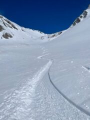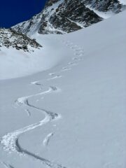 S-P-E-T-T-A-C-O-L-A-R-E! Partito da solo da Planpencieux sono tornato da solo fino a Lavachey. Temevo vento e crosta da vento. Il Vento forte c’era solo al colle e un po’ in ValFerret, per il resto freddo, ogni tanto un po’ di brezza ma si stava bene. Tracciata tutta, dal Bonatti in su, ma non si affondava tanto (10-20cm). La discesa è stata una cosa commovente: a parte i primi 20m (20) dal colle dove c’era un po’ di crosta, con un po’ di occhio ho beccato della neve eccezionale. Anche nel bosco sotto il Bonatti era super. Il miglior Malatra’ di sempre!