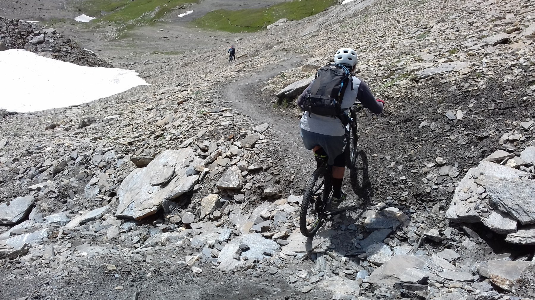 Dall’alpe tza de merdeux bisogna spingere o portare la mtb in spalla. Complessivamente per almeno 4 ore si spinge la bici su un percorso totale di circa 72 km (13 ore).