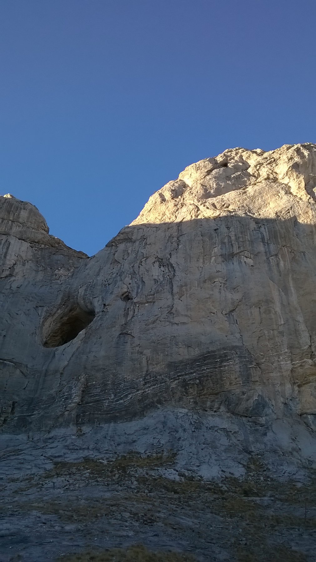 L2 : violento passo di dita, poi un magnifico muro a tacche, molto continuo ( 6b+, poi 6b, 30 m)