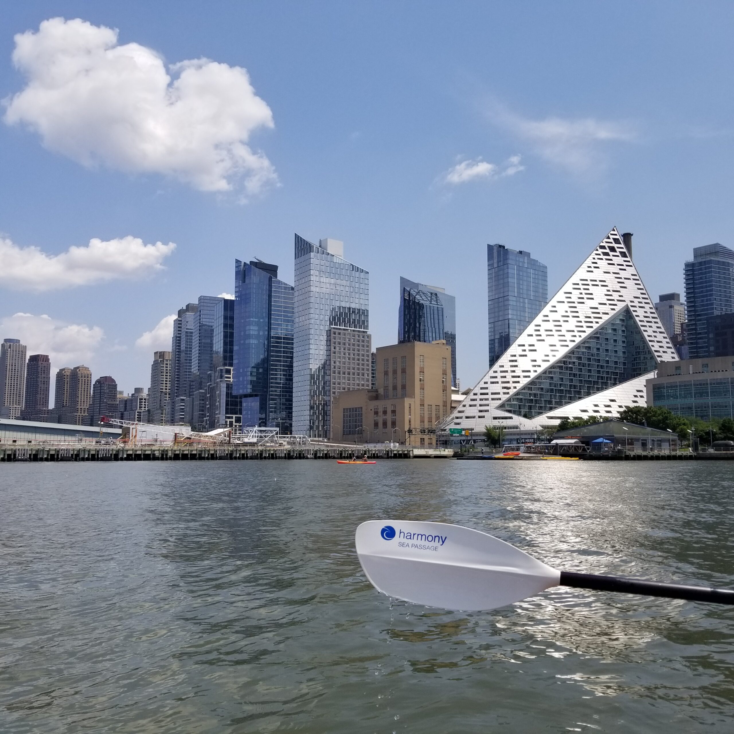 Dal Pier 96 ci si puo’ muovere tra i due moli ed entro i limiti segnalati dalle boe rosse. Il molo a sinistra e’ il Manhattan Cruise Terminal. Questo tratto di fiume Hudson e’ piu’ tranquillo rispetto ai tratti piu’ vicini alla foce, molto trafficati e con frequenti onde create dalle imbarcazioni piu’ grandi e veloci.