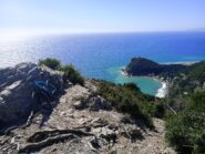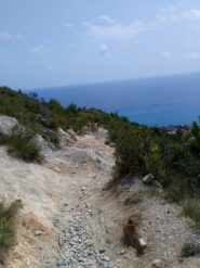 Si segue il disco rosso con linea bianca e si sale con una vista spettacolare sul mar Ligure sino al semaforo ( zona militare) , proseguendo in discesa si imbocca a sinistra un sentierino segnalato con una X che ci porterà con una discesa tecnica e mozzafiato sino quasi alla Punta Crena da dove si risale seguendo questa volta il sentiero segnalato con una doppia XX