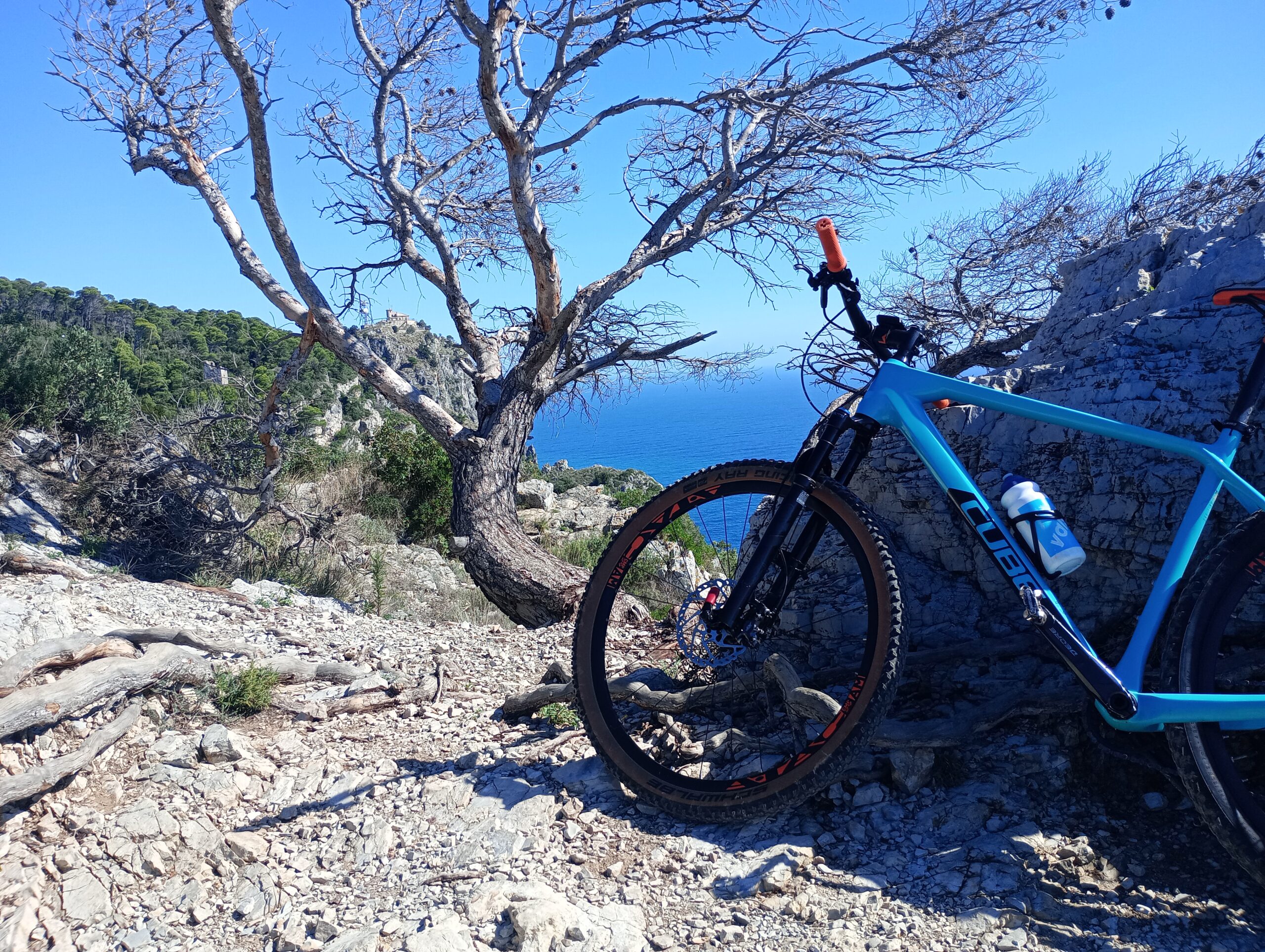 Dall'alto delle bianche pareti rocciose a picco sul mare pedalare è sublime , peccato per l'incendio che ha devastato un bosco stupendo , ma la natura ci mette del suo e stanno ricrescendo le piantine e la vegetazione nuova