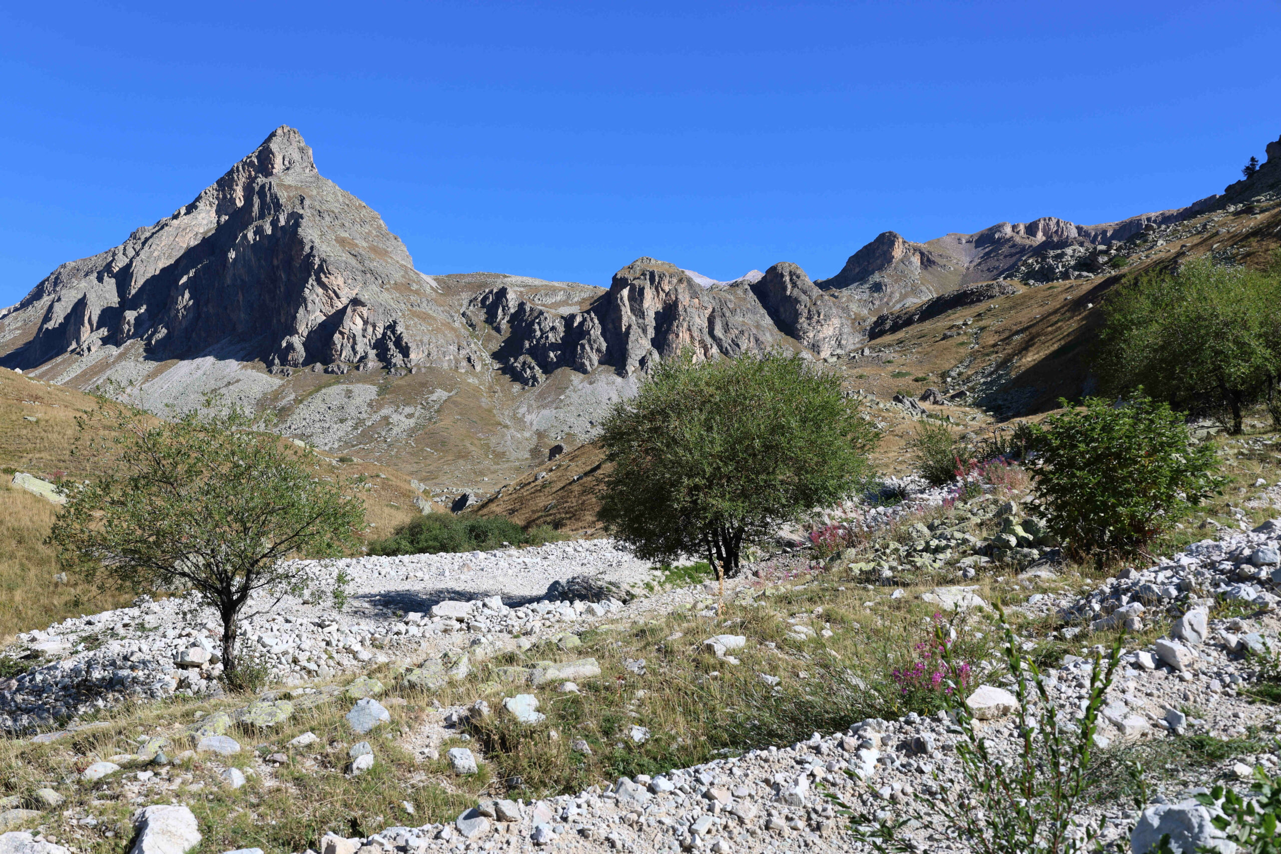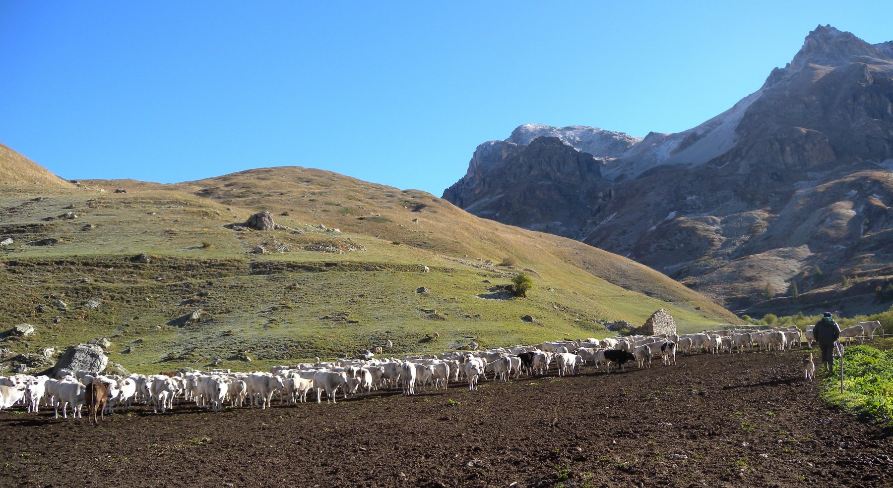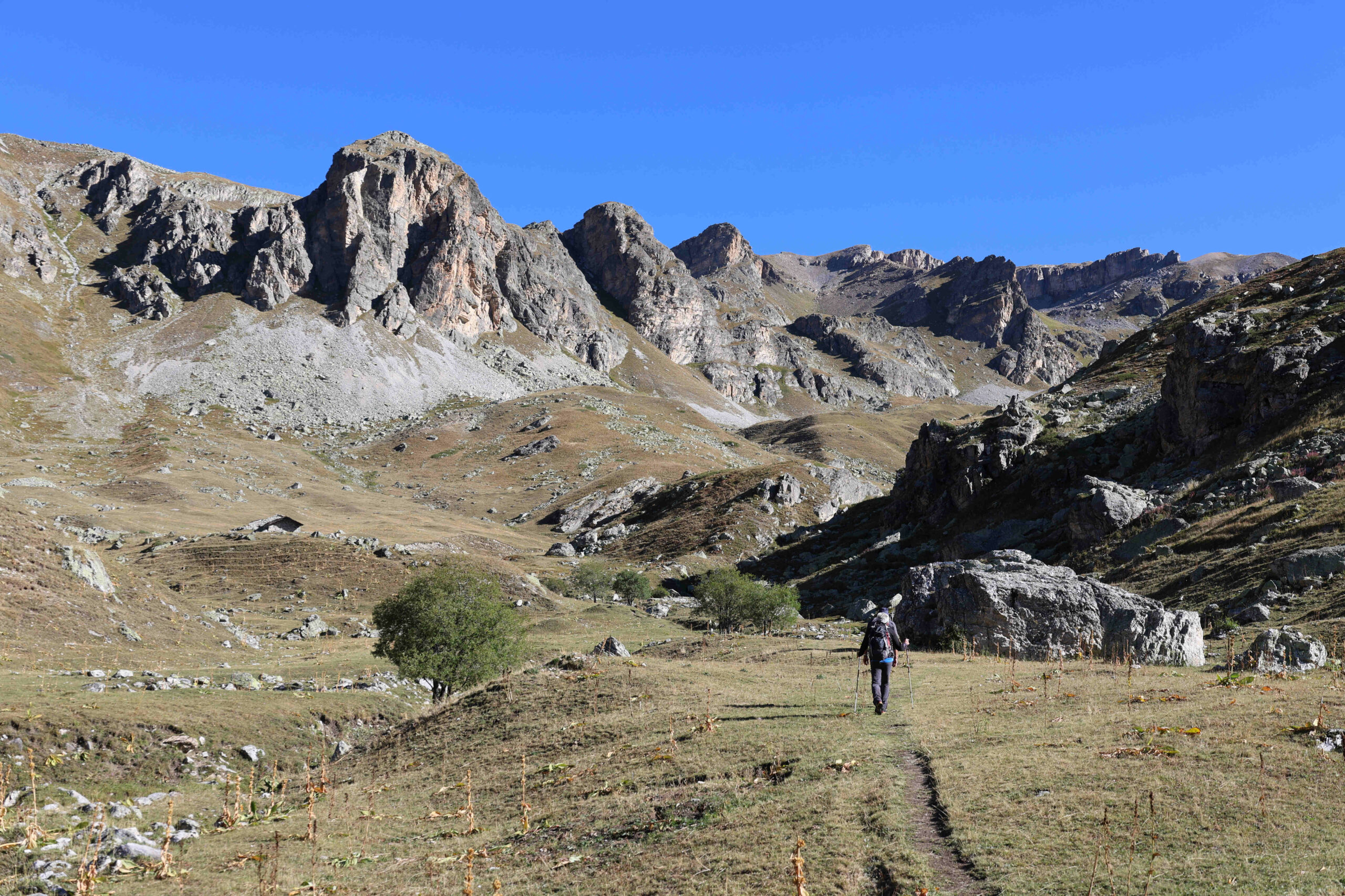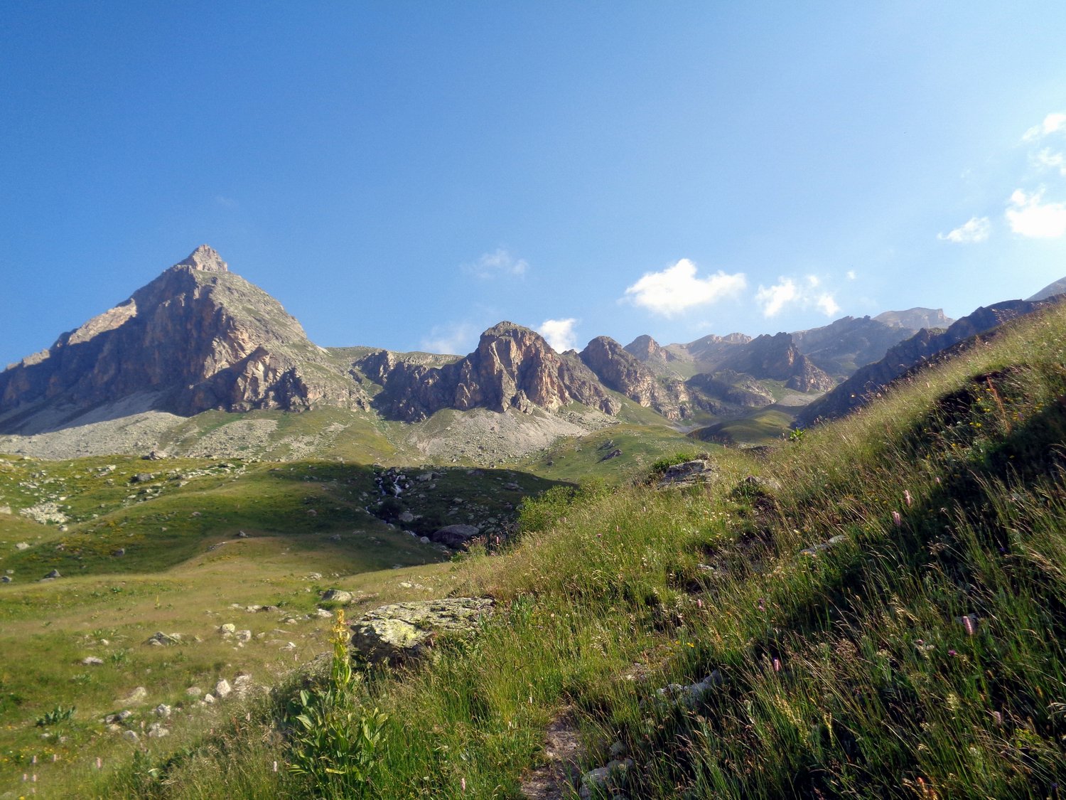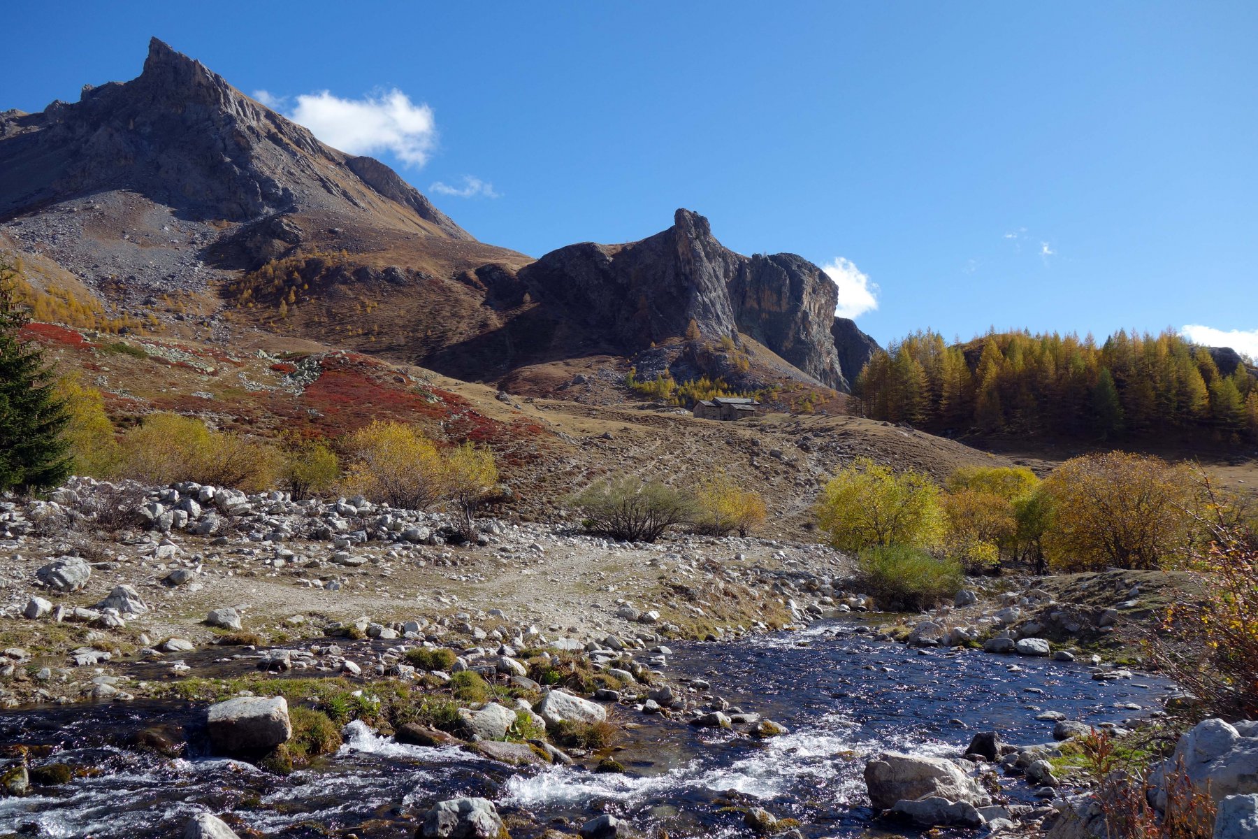 Da qui seguire il GTA per il colle di Bellino, attraversando il torrente sul ponticello di legno, per poi imboccare il sinuoso vallone fino ad un vasto pianoro con una baita isolata.