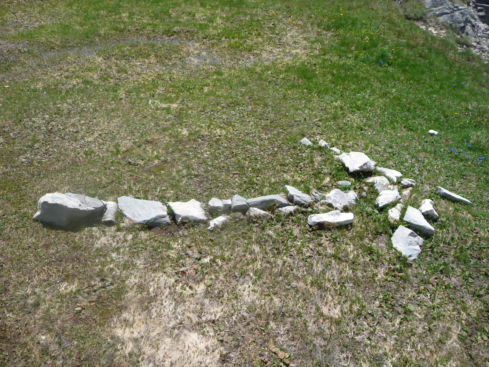 Sterrata in stato più che discreto. Eolo ha cercato di accompagnare alcuni tratti della salita, poi è sparito ed in discesa non si è più visto. Saliti per la via solita dalle grange Collet, in discesa abbiamo cercato, dopo la Bassa di Terrarossa, un percorso alternativo, trovandolo: proseguendo dopo il Colle per circa un quarto d’ora senza perdere quota, si trova sul terreno una enorme (due metri) freccia costruita con le pietre che indica un ripido canalone di tracce e sfasciumi….percorrendolo con attenzione ci si congiunge col sentiero che scende dal Colle di Bellino.