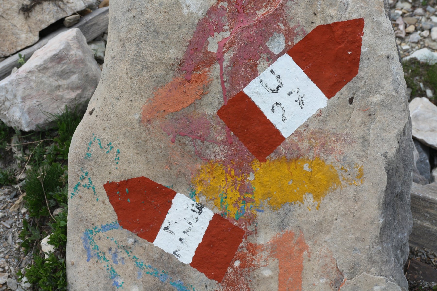 Dopo la Grange dell’Autaret, il masso con le indicazioni “maniglia” è veramente sbiadito, quasi illeggibile. Io l’ho inspiegabilmente perso e son salito in cresta seguendo una linea molto più a destra della Bassa di Terrarossa. In conclusione: arrampicata per pietraie, pendii erbosi e roccette fino alla cresta dove mi aspettava un branco di stambecchi (per nulla infastiditi da me).
