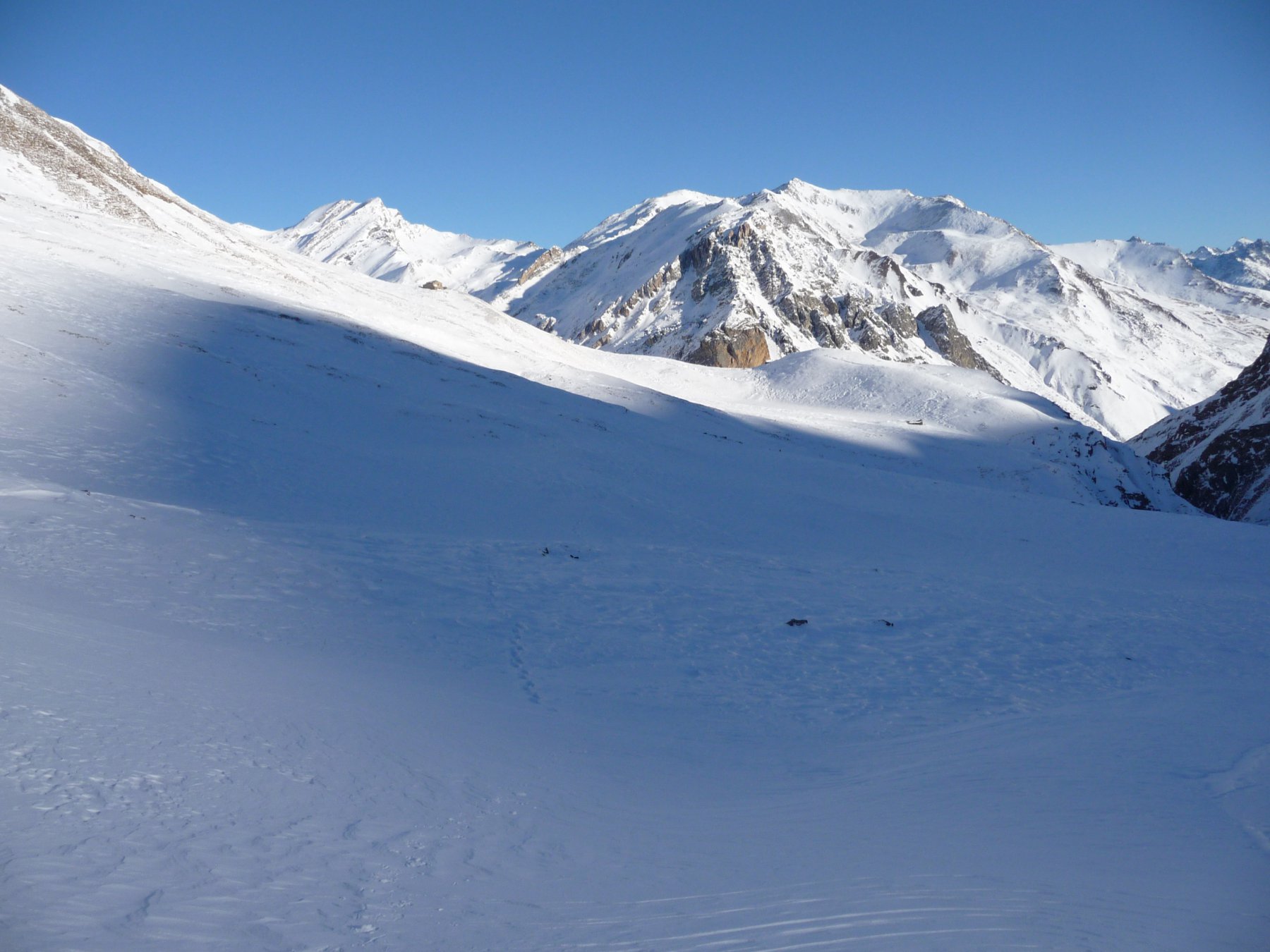 Percorso lungo di un certo impegno riservato a racchettari allenati. Piccozza e ramponi utili.