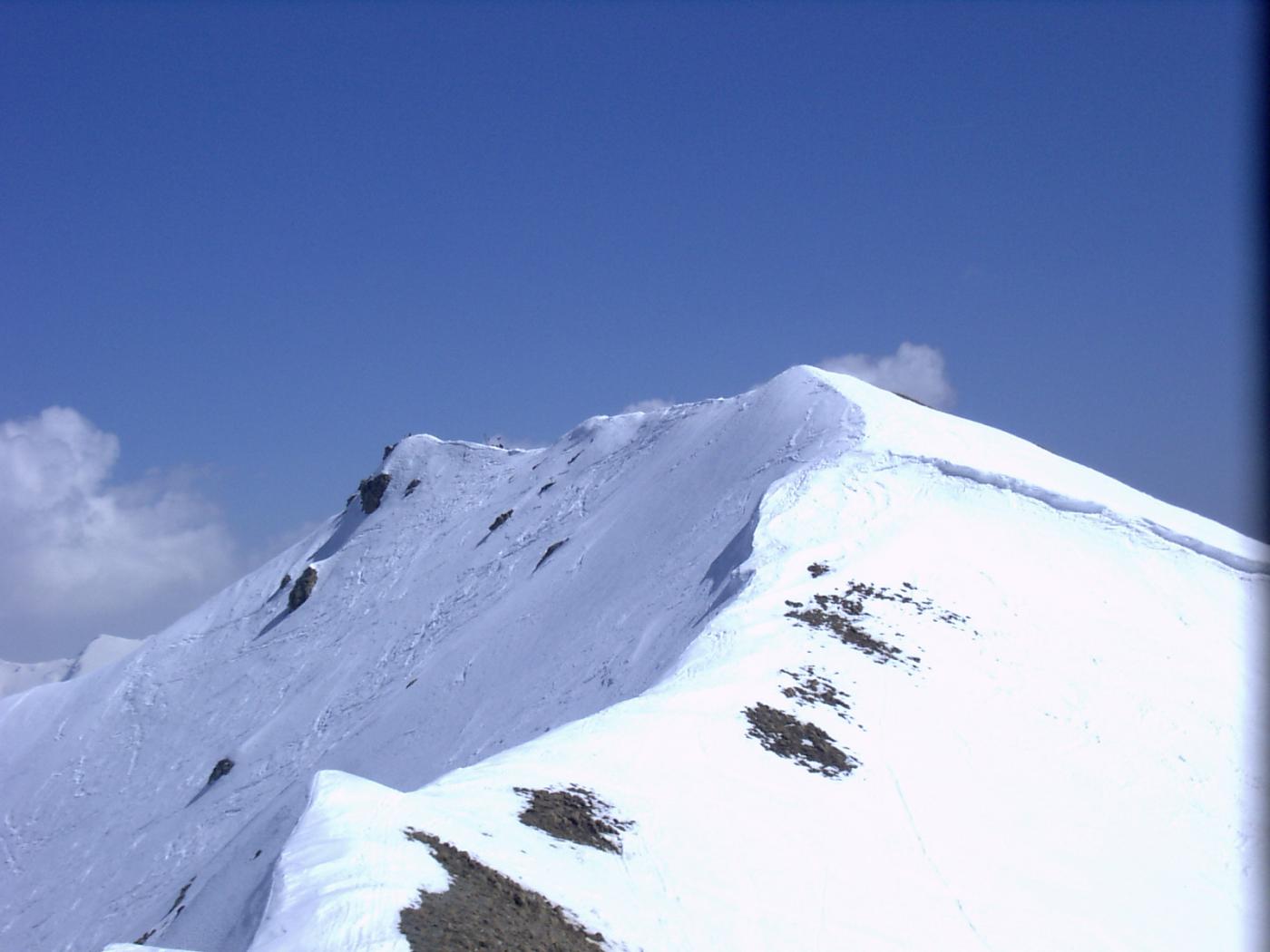 Bella giornata, splendida gita su neve solida e portante che non ha richiesto le racchette per tutta la salita. Partiti alle 8.00, arrivati in cima alle 11.30. I pendii che scendono dal Bec du Lièvre e che si attraversano nella parte bassa sono ormai in gran parte spogli di neve (valanghe recenti, invece, sul versante opposto). Viste le grandi cornici sulla cresta del Villadel abbiamo optato per il comodo pendio rivolto a Sud. In discesa non siamo passati per la Tete Platasse, ma abbiamo tagliato per i pendii che si trovano poco oltre la depressione sulla cresta Ovest. Usate le racchette per tutta la discesa, su neve ormai cedevole. Grandioso il panorama di cima. Ma si cammina in un piccolo paradiso fin da quando si arriva alla conca “dei tre rami”.