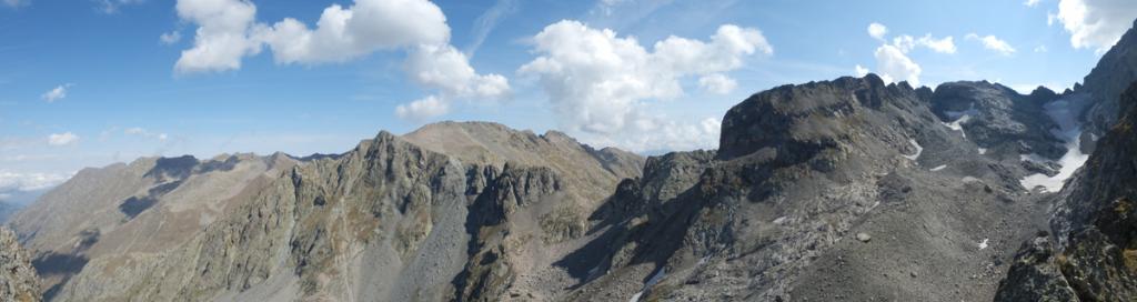 Seguendo le brevi note tratte dal libro di Michelangelo Bruno, ho cercato di seguire fedelmente il suo itinerario che però, giustamente, parlava di salire “senza percorso obbligato” il versante Ovest; in effetti, dopo il primo tratto di semplice arrampicata, occorre destreggiarsi tra cengette di camosci e roccette, alcune di queste infide. Molto bella la vista dalla vetta!La crestina sommitale è, in certi punti, particolarmente affilata….mi sono sbrigato a fare le foto pensando a cosa poteva accadere se fosse arrivato un colpo improvviso di vento!
