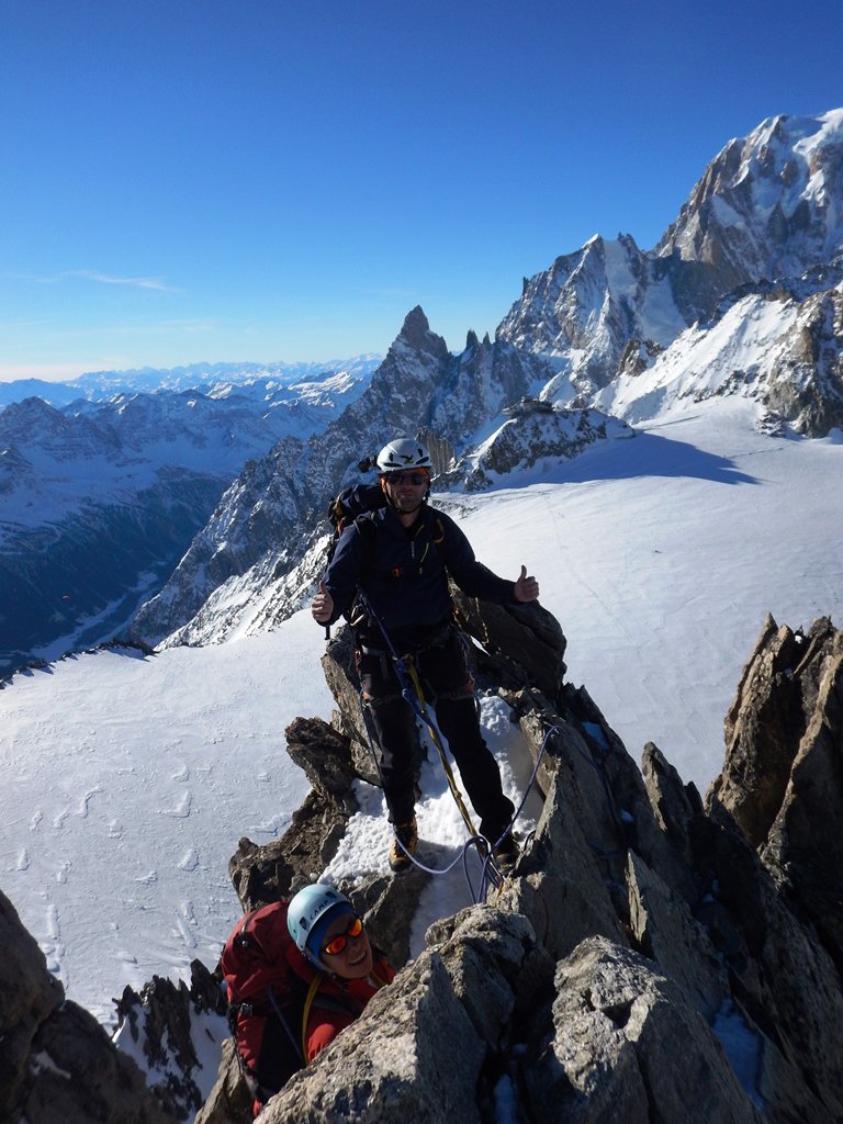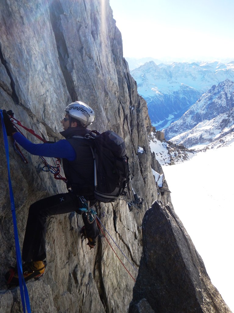 Bella traversata panoramica nord est / sud con pochi passi di arrampicata alternati a belle crestine nevose (su buona traccia) con qualche tratto più esposto. La doppia finale nel canale della cresta sud consente di raggiungere in breve il ghiacciaio sottostante.