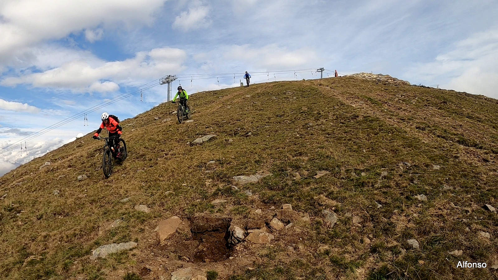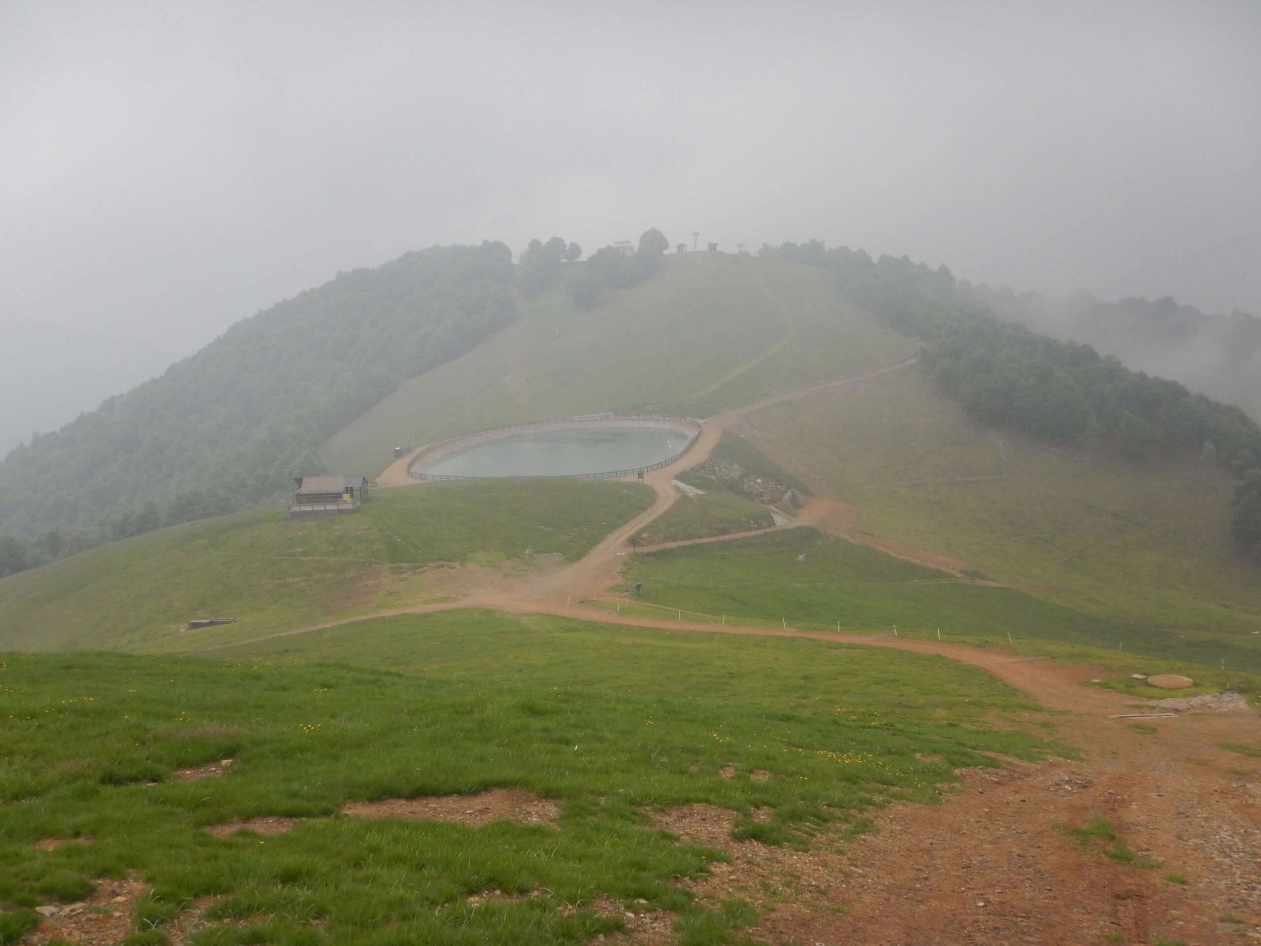da qui si spinge la bici per pochi minuti su prati fino ad intercettare il sentiero erboso che scende dal Monticchio. Con una bella e facile discesa si ritorna nuovamente sulla Panoramica Zegna che questa volta si segue in salita fino al Bocchetto Sessera.