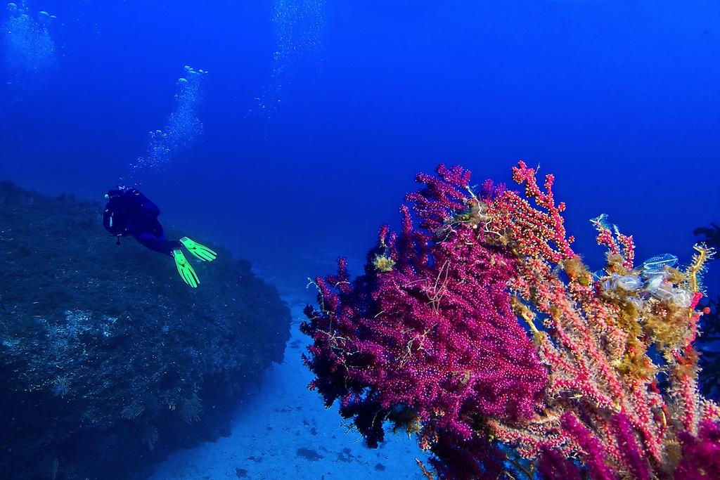 Appena ci si affaccia sul versante nord di detti torrioni, le loro pareti iniziano ad essere ricoperte da gorgonie. Sul fondo, a ca -40, vi è un tunnel passante, usciti dal quale ci si dirige verso il terzo torrione, il più a ovest, visitando meravigliosi giardini di gorgonie rosse.