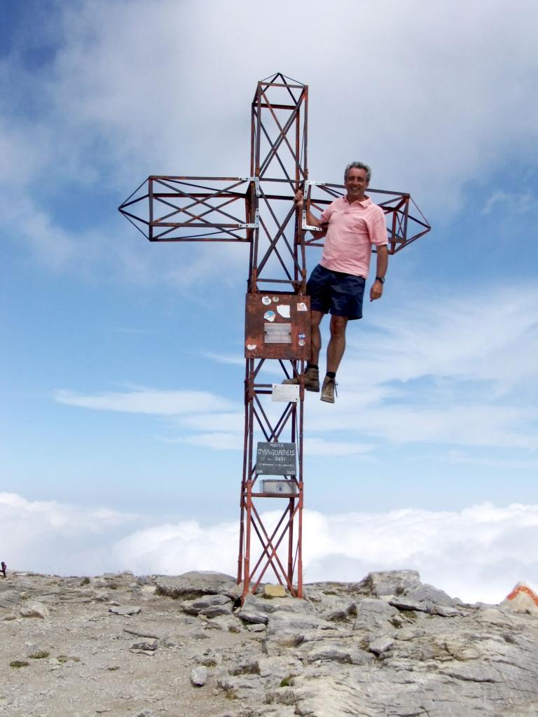 Partito alle 7,30 da Carnino Superiore con il mio vecchio amico Filippo che sta cominciando ad interessarsi al trekking e ci teneva tanto a salire sul Marguareis.Giornata calda e serena,almeno sul versante sud perchè sui crinali si intravedevano già alcune nuvole.Percorso classico:Pian Ciucchea,Piano della Chiusetta,Vallone dei Maestri,rifugio Don Barbera,Bassa di Gaina e tratto finale dalla parte meno ripida.Saliti in modo lento ma costante,siamo arrivati in cima alle 11,40.A nord un fitto mare di nubi,da cui sbucavano solo l’Argentera ed il Monviso,copriva la pianura mentre dagli altri lati c’era ancora un po’ di sole anche se le foschie erano in aumento.In vetta sei o sette persone,salite tutte da Carnino.Dopo le solite foto e lo spuntino siamo scesi per la stessa strada,sempre piuttosto lentamente e,fatta una breve sosta al rifugio,siam giunti alle macchine verso le 16,30.Complessivamente giro di circa 18 kilometri , per un dislivello di 1300 metri .In questa mia seconda ascesa al Marguareis ho fatto meno fatica nella parte terminale,rispetto alla volta precedente,forse perchè siamo saliti un po’ più piano.In compenso il ritorno è sembrato interminabile,anche a causa dei piedi indolenziti.