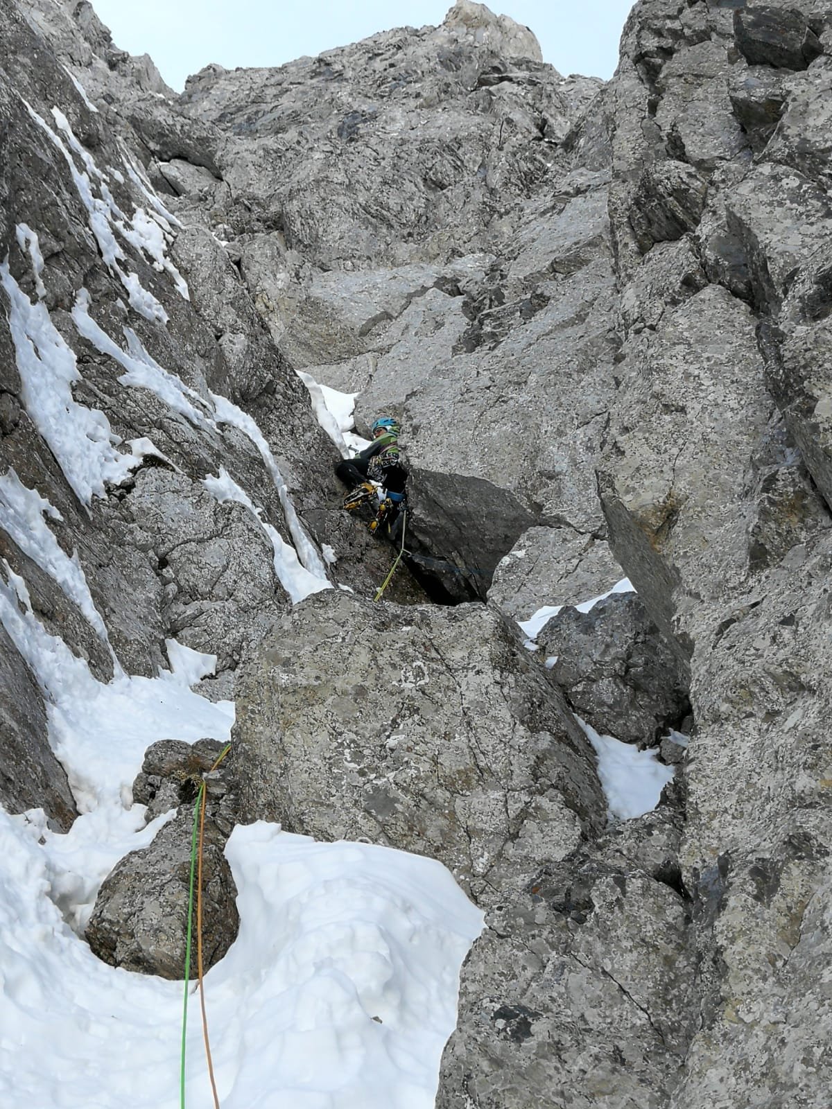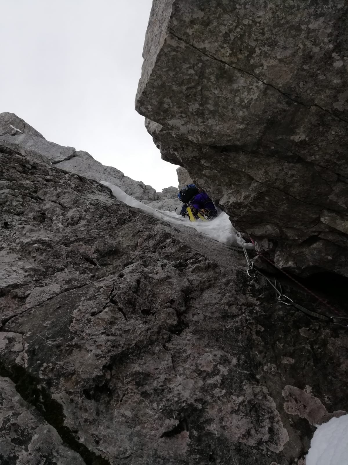 Si parte dalla grotta per affrontare la strozzatura e si continua su pendio ripido
