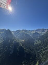 Volo panoramico appena svalicata la cresta del Marguareis, possibile atterraggio intermedio al Rifugio Garelli o, con poca quota, in un grosso prato posto sotto la cima Bartivolera. Sconsigliato l’atterraggio a Pian delle Gorre, venti turbolenti e tantissima gente che fa pic-nic.