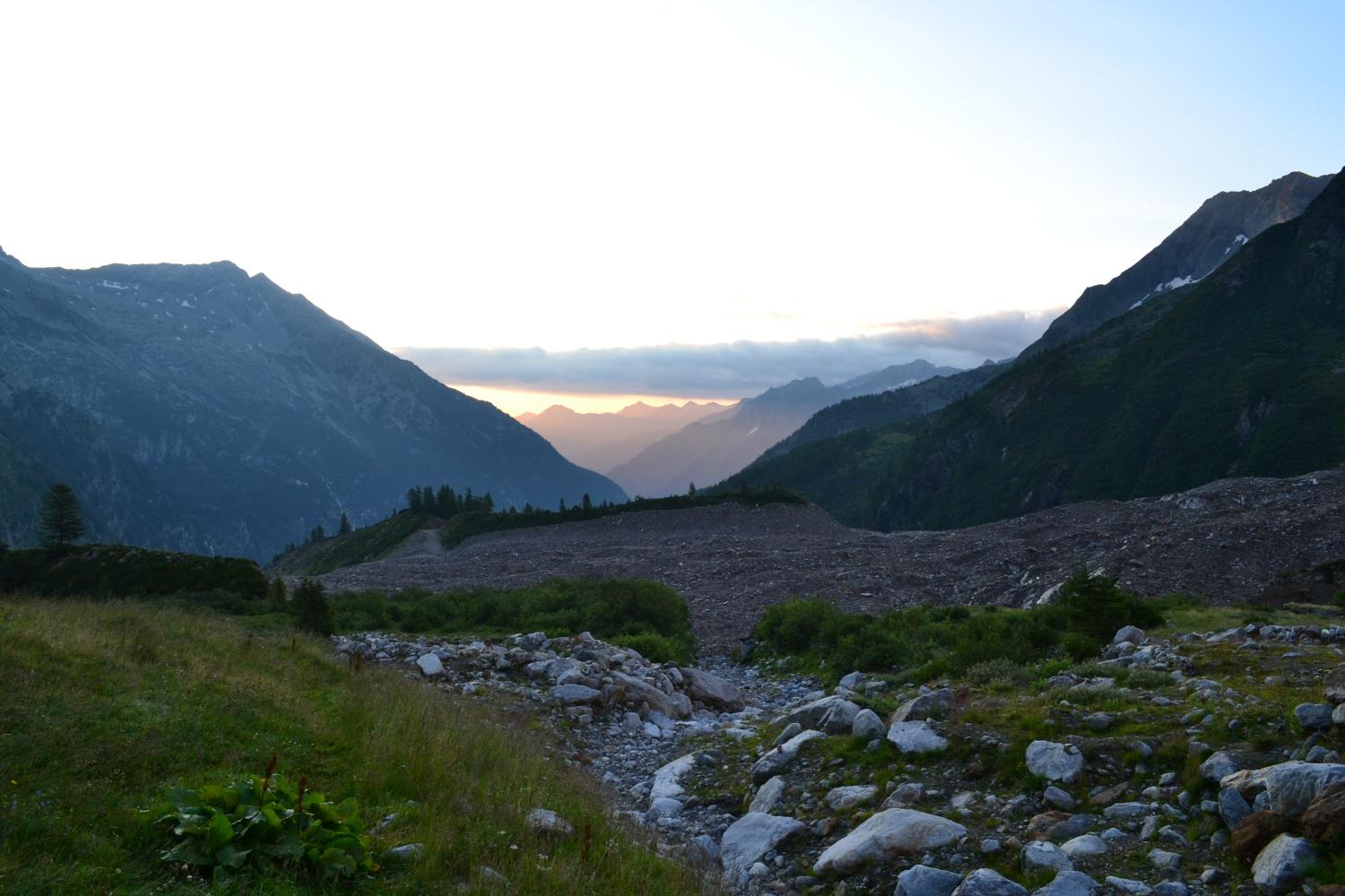 Prendendo la traccia che prosegue sulla sinistra, ci si inoltra nella Piana del Filar, che si segue sino al suo termine. A questo punto si risale, sulla propria sinistra, il crinale erboso che separa la Piana dal fronte morenico del ghiacciaio.